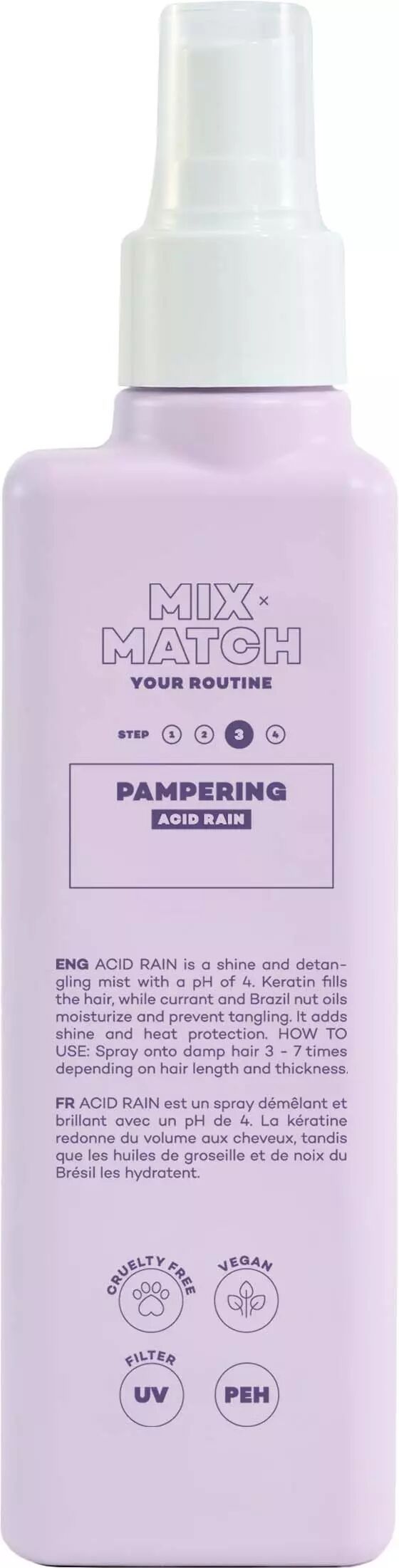 Hairmate Acid Rain är en kraftigt stimulerande hårbottenvårdspray framtagen för att optimera förutsättningarna för alla hårtyper. Genom att främja blodcirkulationen skapas en gynnsam miljö för hårsäckarna, vilket är avgörande för en hälsosam hårväxt. Formulan är berikad med stamcellsextrakt från olivträd som ger aktivt stöd under hårets tillväxtfas. Lavendelvatten och lavendelolja samverkar för att förhindra håravfall samtidigt som de ger produkten en behaglig, naturlig doft.