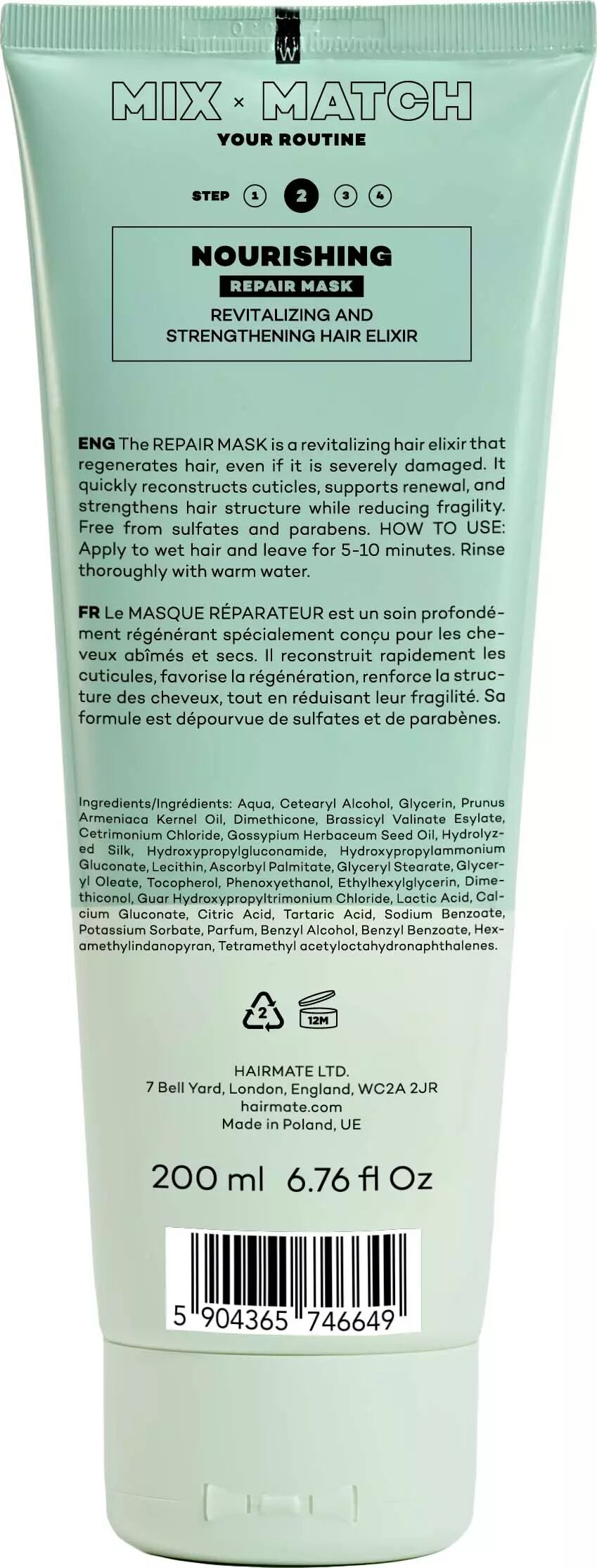 Hairmate Repair Mask innehåller en avancerad formula för strukturell återuppbyggnad: