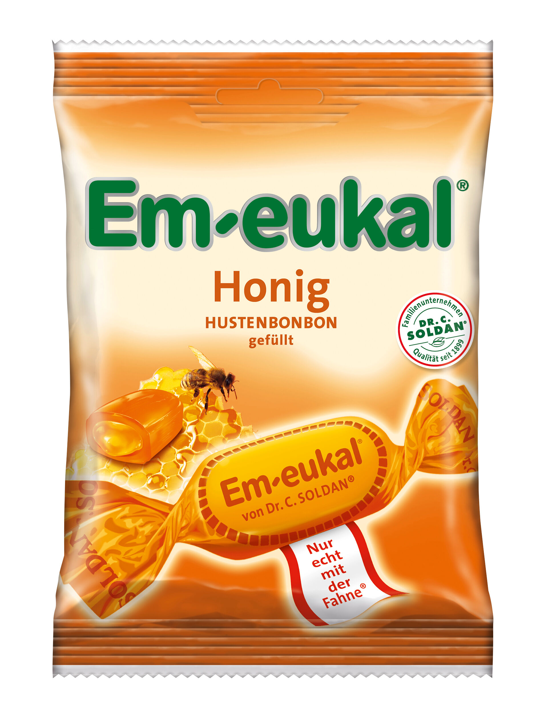 En kvalitetsprodukt från det gamla familjeägda företaget Dr. C. Soldan. Alla Em-eukal®-hosta bonbon innehåller noga utvalda, naturliga ingredienser. Deras kvalitetsförsegling är den lilla röda och vita flaggan: "Endast den ursprungliga och äkta produkten kommer med flaggan!" Eftersom bara originalet har denna flagga och bara originalet kan skryta med denna exceptionella "made in Germany" -kvalitet.