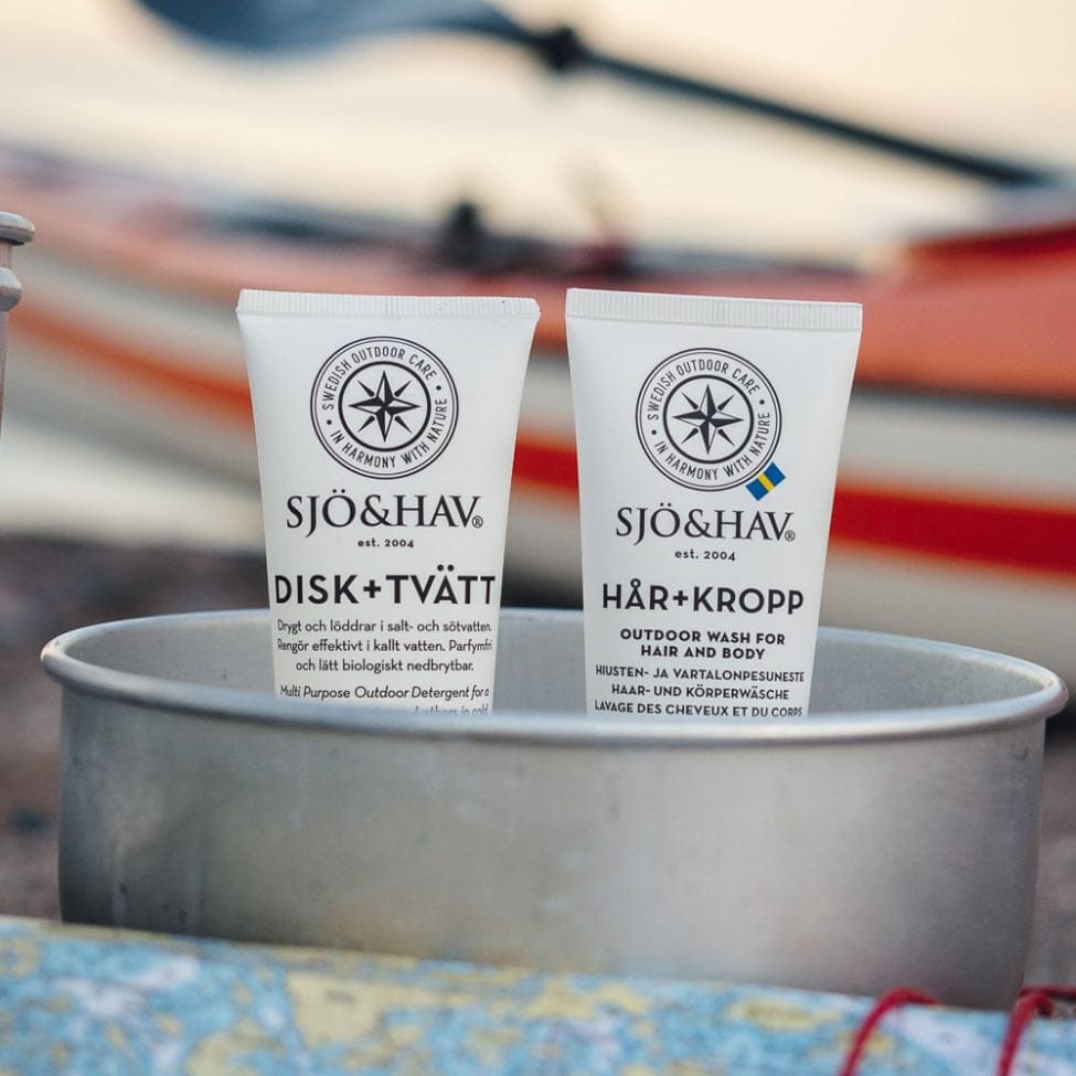 Hår+Kropp multirengöring 75ml från Sjö & Hav: Dryg och mild tvål och schampo för utomhusäventyr. Frisk doft, biologiskt nedbrytbart. Använd med omsorg.