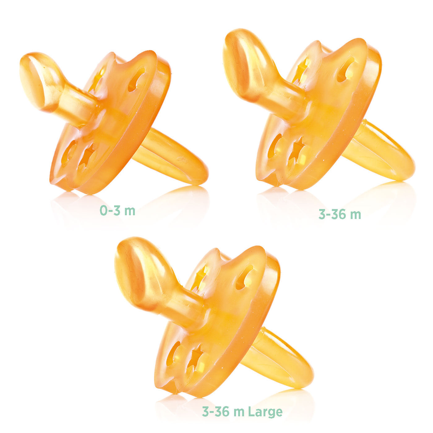 En napp i naturgummi som är fjärilsformad och har anatomiskt utformad sugdel. Detta är en napp som är stöpt i en enda form, vilket gör den hygienisk och lätt att rengöra. Nappar i naturgummi är naturligt mjuka och välsmakande i jämförelse med nappar av plast och silikon. Den här nappen har också praktiska och söta ventilationshål i form av stjärnor & månar. Den här nappen kommer från gedigna Hevea baby.