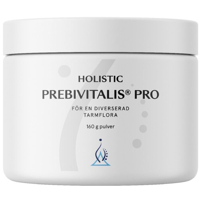 Holistic Prebivitalis® pro är en fiberrik pulverblandning för tarmens smörsyrabildande bakterier och tarmflorans mångfald. Pulvret består av 12 olika växtbaserade fibrer nedbrutna i olika långa och förgrenade polysackarider som blir mat till – och därmed gynnar – olika typer av bakterier i tarmen.