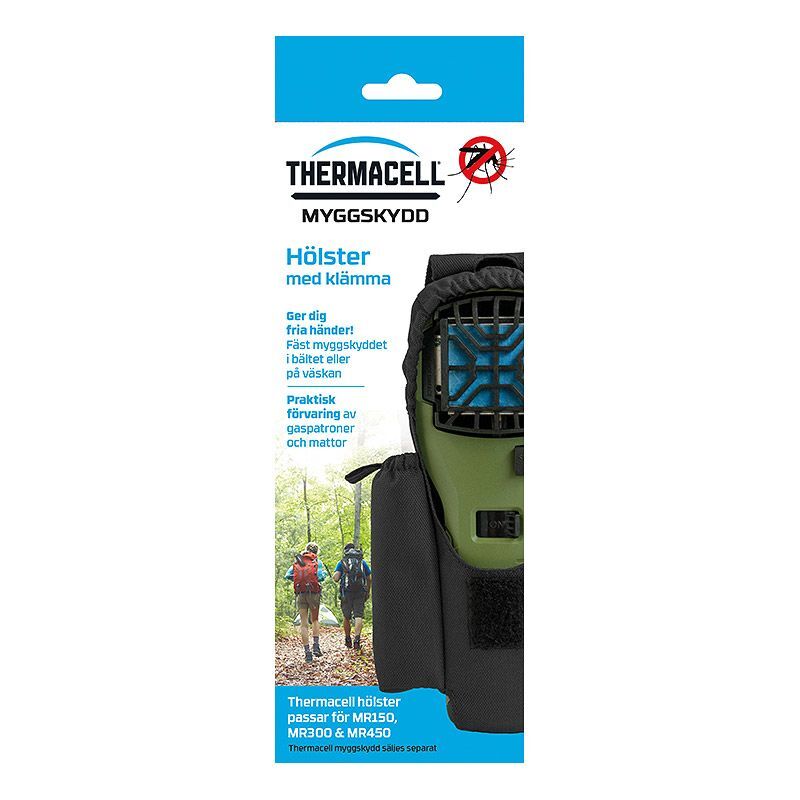 Thermacell hölster är ett praktiskt tillbehör att använda tillsammans med myggskydd MR300 eller den tidigare modellen MR150. Hölstret låter dig enkelt fästa skyddet i kläderna eller på en väska och gör det enklare att röra sig fritt i naturen. Det har även fickor att förvara gaspatroner och refillmattor i. Teknisk information Passar: Myggskydd MR150/MR300 Färg: Svart