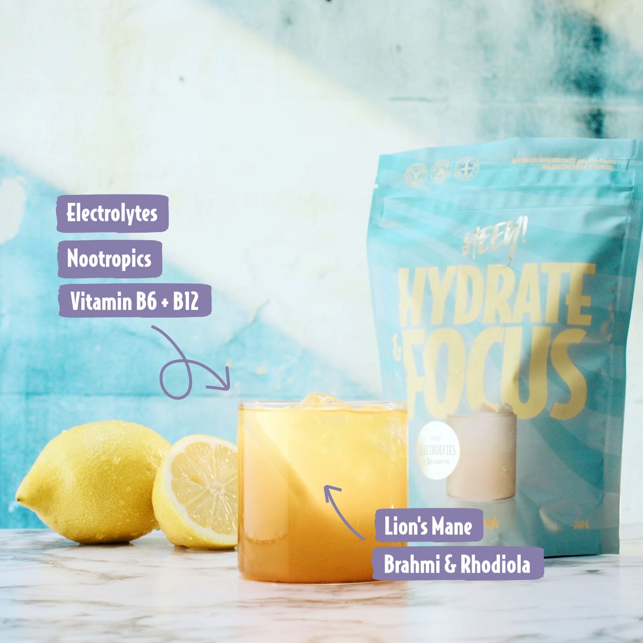 Detta är inte bara elektrolyer utan Hydrate & Focus innehåller även Lion´s mane, Bacopa monnieri, rosenrot och L-teanin i balanserade mängder. Detta kompletteras med vitamin B6 och B12 som båda är viktiga för nervsystemet och en normal psykologisk funktion.