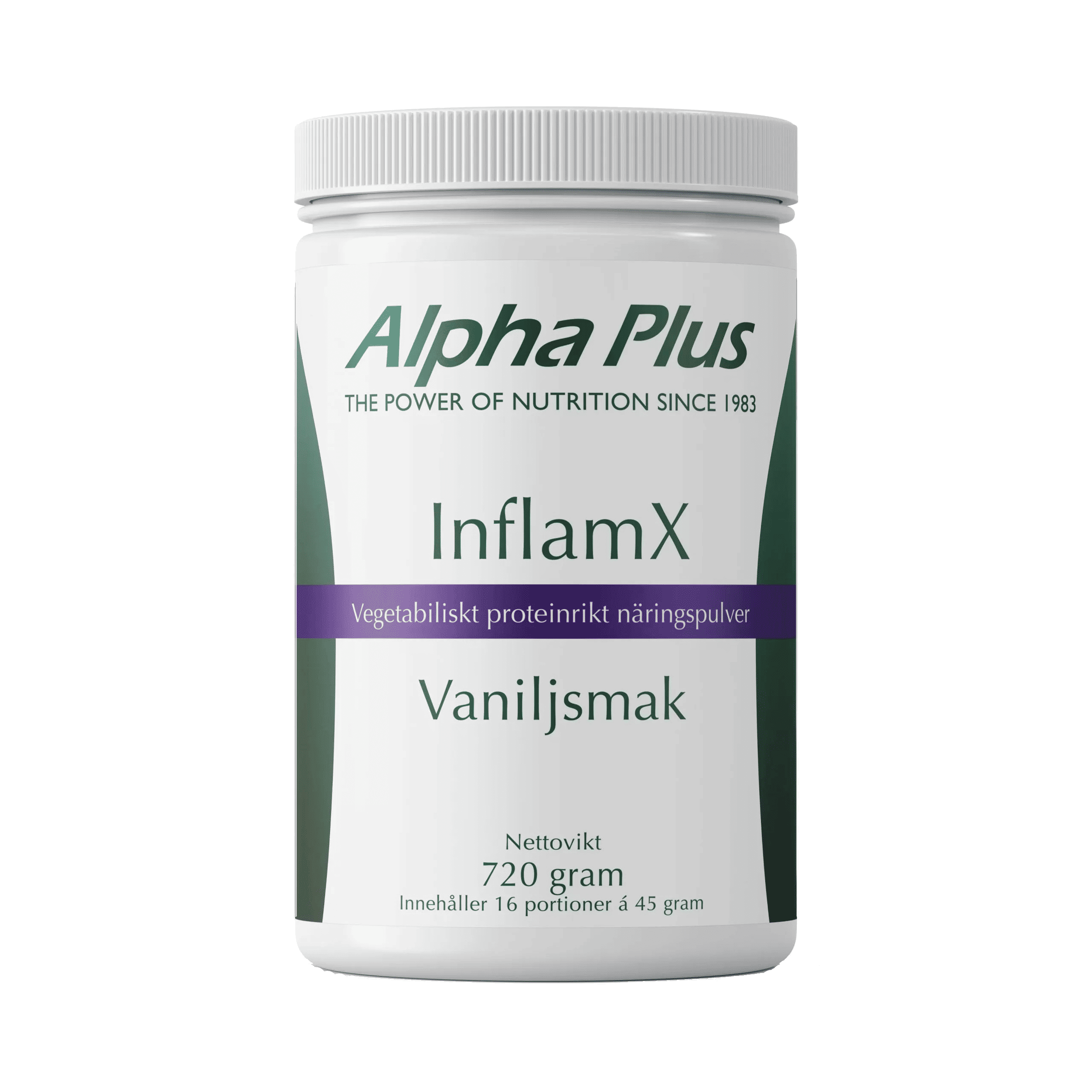 InflamX är en proteinrik näringsdryck som kan användas som mellanmål och passar utmärkt att blanda i en smoothie eller annan valfri dryck. InflamX är baserat på ris- och ärtprotein och innehåller väl utvalda vitaminer, mineraler och aminosyror samt växtnäringsämnen som ingefära-, gurkmeja- och humleextrakt.