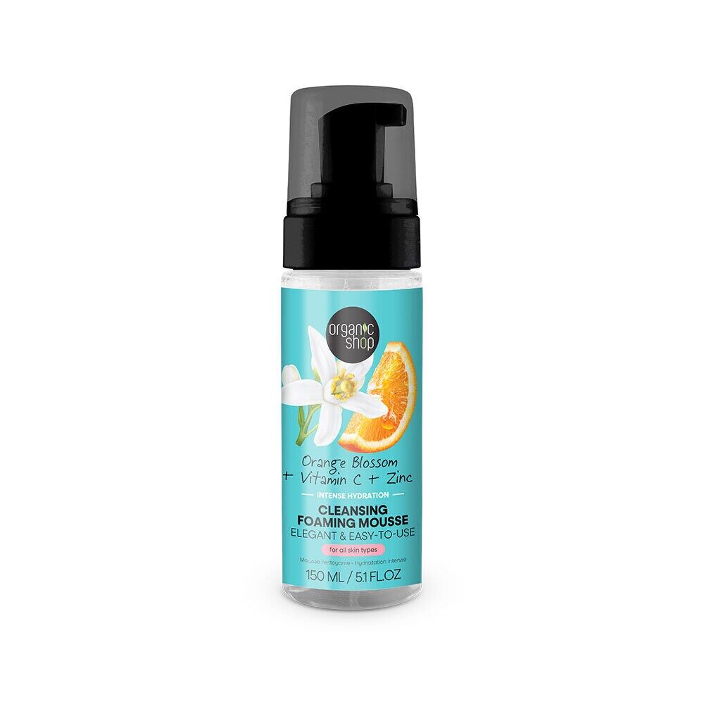 Organic Shop Intense Hydration Cleansing Foaming Mousse är en skonsam men effektiv ansiktsrengöring i mousseform som rengör huden på djupet utan att torka ut. Det luftiga, krämiga skummet avlägsnar orenheter och makeup samtidigt som huden tillförs intensiv återfuktning och känns fräsch, mjuk och balanserad efter varje användning.