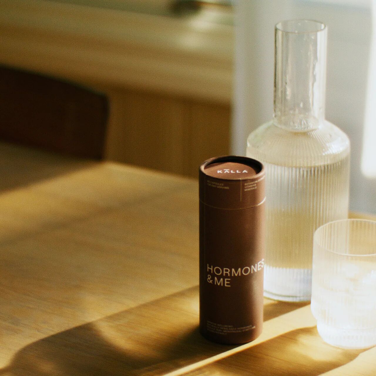 Hormones & Me från Källa är ett veganskt kosttillskott utvecklat för kvinnor som befinner sig i förklimakteriet eller klimakteriet. Produkten är framtagen för att användas som ett komplement i vardagen när kroppen genomgår naturliga hormonella förändringar. Hormones & Me innehåller en kombination av växtbaserade extrakt, vitaminer och mineraler som valts ut för att passa denna livsfas.