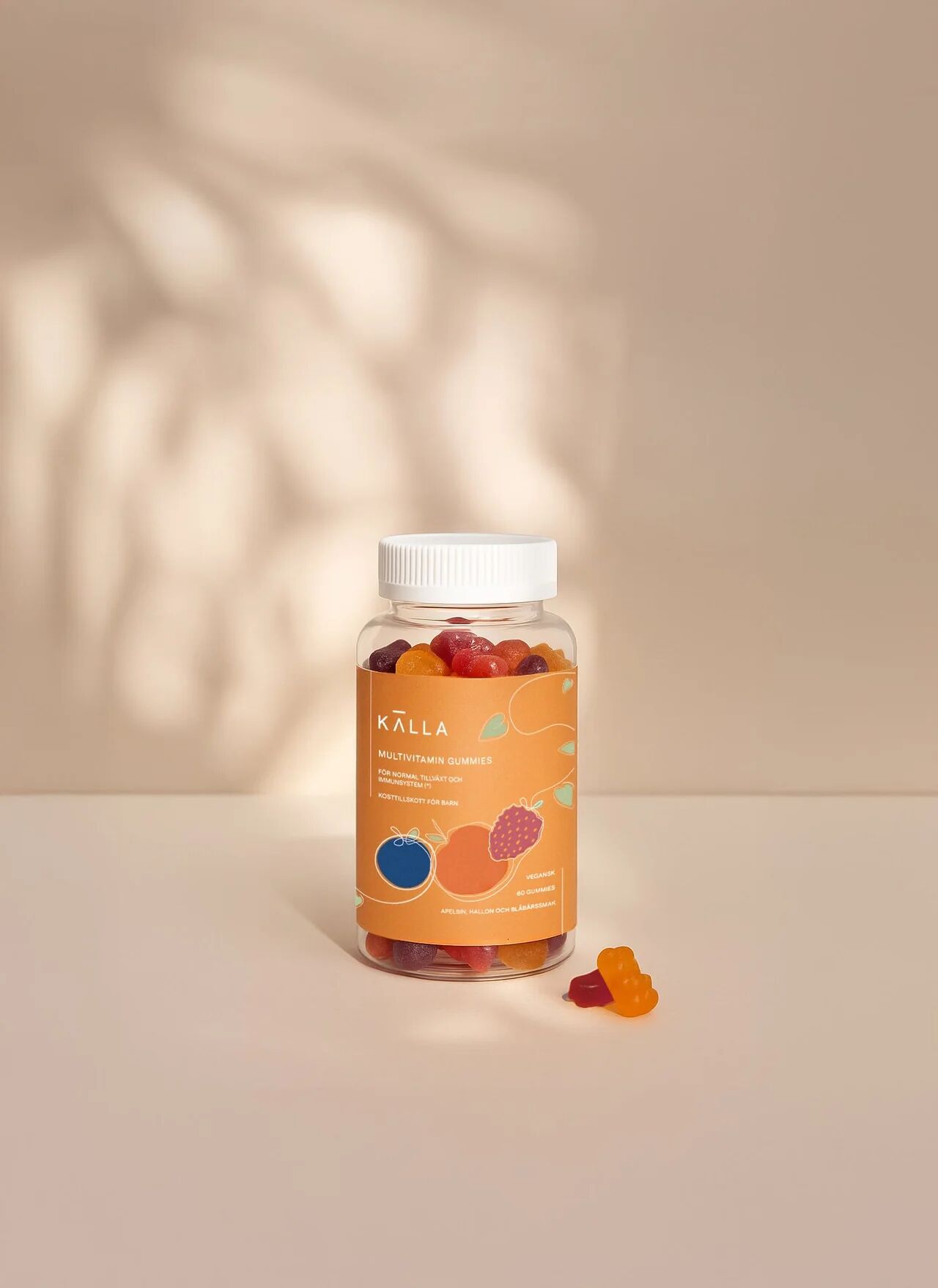 Våra multivitamin gummies stödjer barns välbefinnande med 9 essentiella vitaminer och mineraler för immunförsvar, tillväxt, energi och kognitiv utveckling.