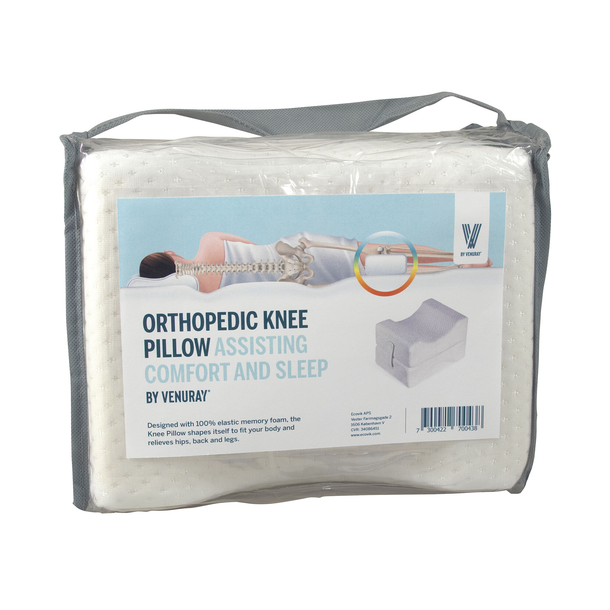 Knäkudde By Venuray är en anatomiskt formad knäkudde med flera funktioner i samma produkt. Knäkudden används för att stabilisera ben, höft och knän nattetid och motverkar effektivt vridning av höften samt framåtrotation av höften när vi sover på sidan.