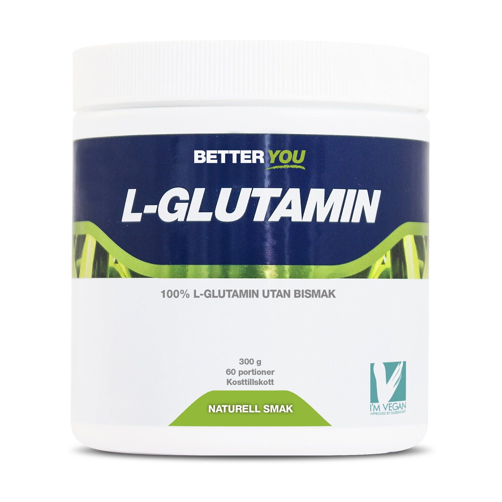 Aminosyran glutamin är en av de 20 aminosyrorna som ingår i protein vilket bygger upp våra muskler och ger en förbättrad återhämtning. L-glutamin bidrar också till ett bättre näringsupptag i tarmen, stöttar kroppens matsmältning och är viktig för kroppens immunsystem. Better you's L-glutamin är glutenfritt och vegangodkänd.