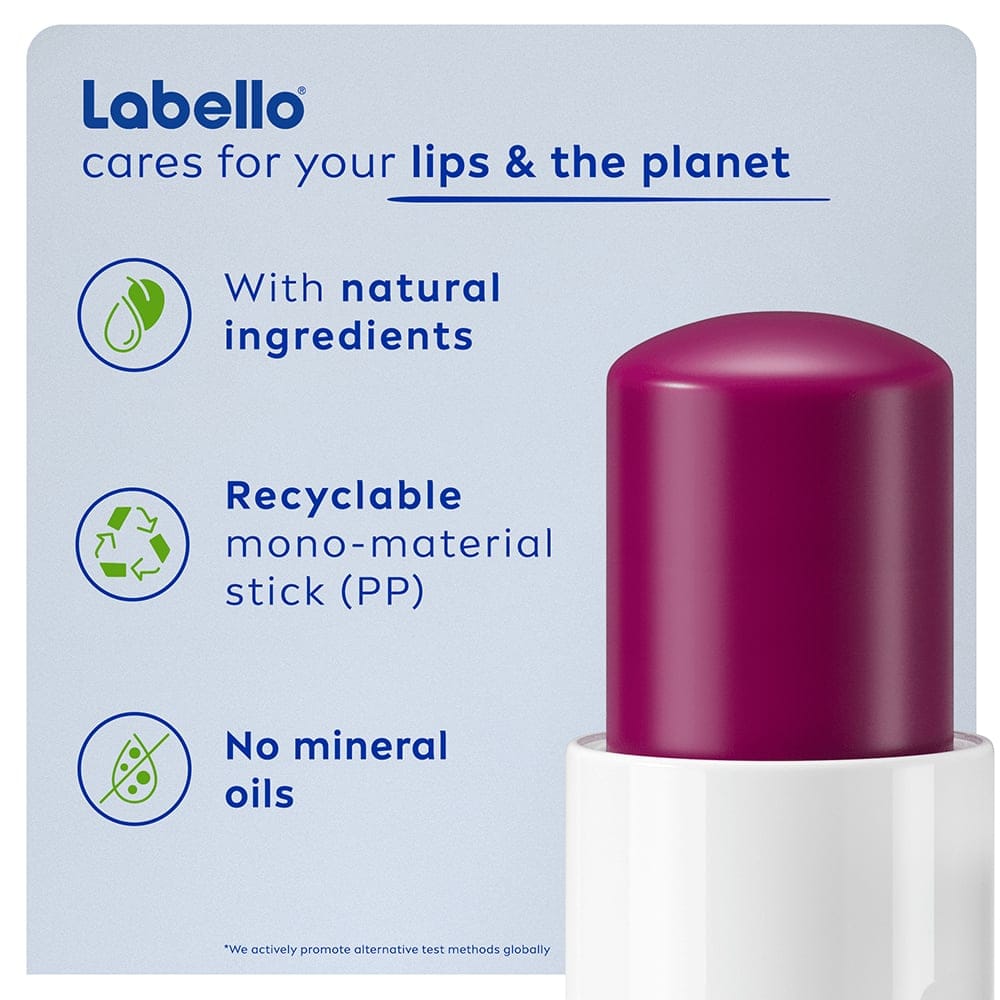 Formulan är en del av en ny, förbättrad generation hudvård för ansikte och läppar. Genom att använda naturliga ingredienser som etiskt framställt sheasmör hjälper stiftet till att stärka läpparnas naturliga barriär. Resultatet är läppar som håller sig mjuka och återfuktade i upp till 24 timmar, även under påfrestningar som kyla, vind eller torr inomhusluft. Som en del av din dagliga kroppsvård ser Labello Blackberry Shine till att dina läppar alltid ser fräscha och välvårdade ut.