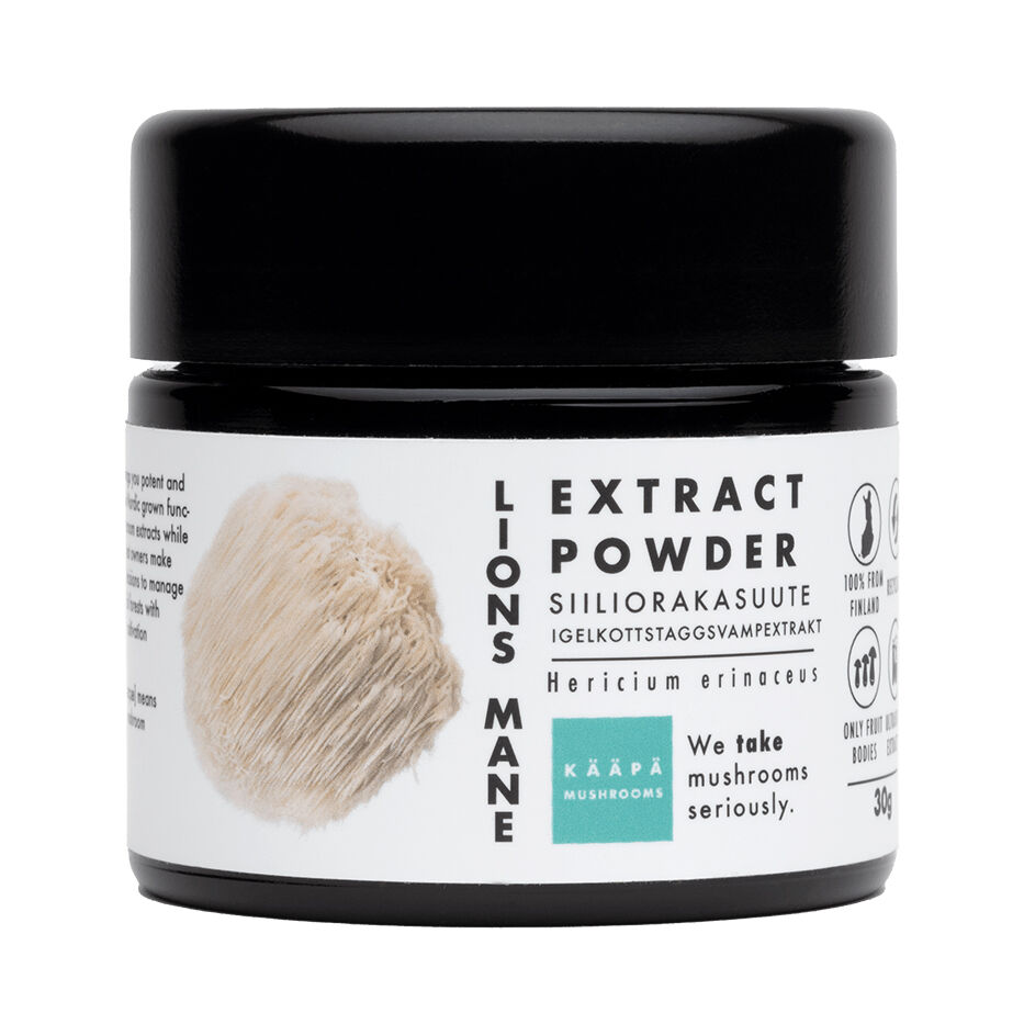 KÄÄPÄ Mushrooms starka extrakt av igelkottstaggsvamp, dvs. Lion's mane (Hericium erinaceus) är odlad i Finland. KÄÄPÄ Mushrooms produkter är 100% ekologiska, och svamparna är odlade med finsk PEFC/FSC certifierad björk som växtunderlag.