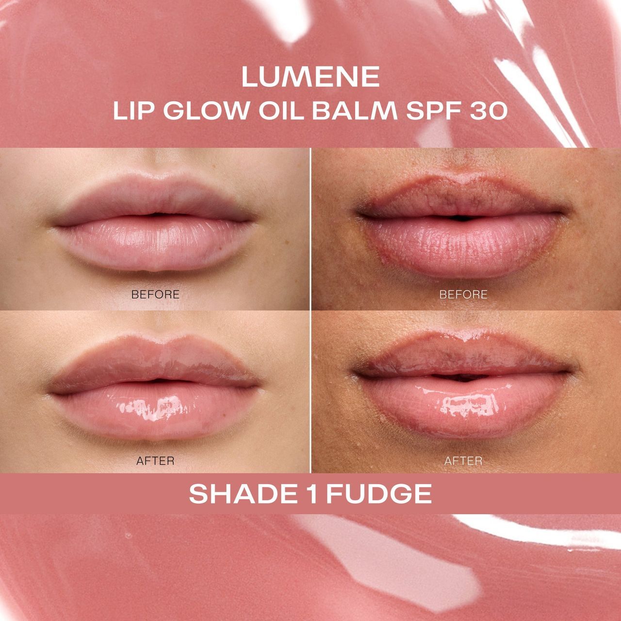 Lumene Lip Glow Oil Balm SPF30 1 Fudge är en innovativ hybridprodukt som kombinerar de mjukgörande egenskaperna hos en läppolja med det höga skyddet från en solskyddskräm. Denna balmliknande olja ger läpparna en skir, varm nyans av fudge samtidigt som den ger ett effektivt bredspektrigt skydd (SPF 30) mot både UVA- och UVB-strålning. Hos bonmed hittar du produkter från Lumene som utnyttjar kraften i nordiska ingredienser för att bevara hudens hälsa och lyster även under solexponering.