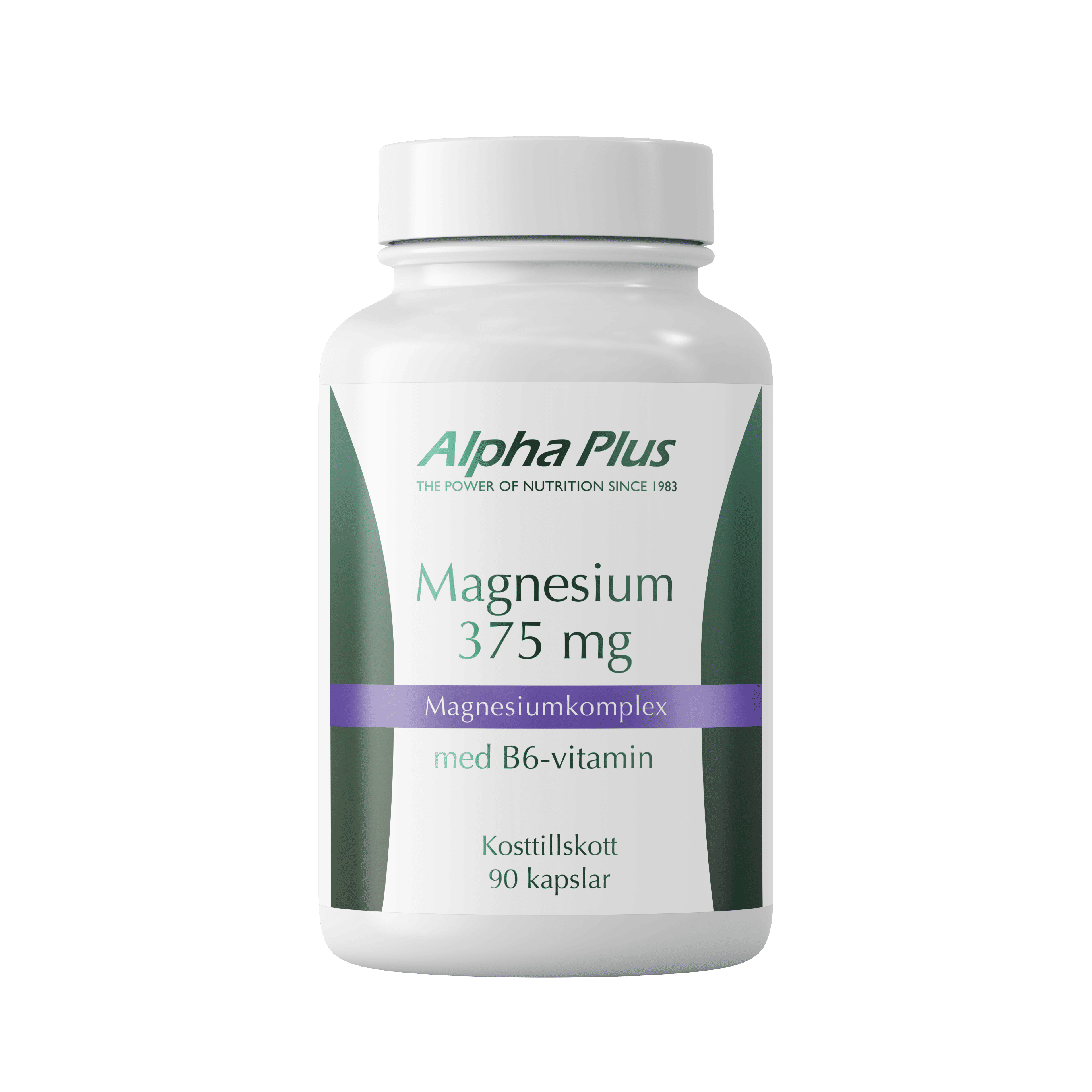 Alpha Plus Magnesium 375 mg är ett kosttillskott som innehåller magnesium och B6 vitamin i vegetabiliska kapslar av cellulosa. Produkten kombinerar fyra olika magnesiumformer i samma kapsel, magnesiumbisglycinat, magnesiumcitrat, magnesiumlaktat och magnesiumoxid.