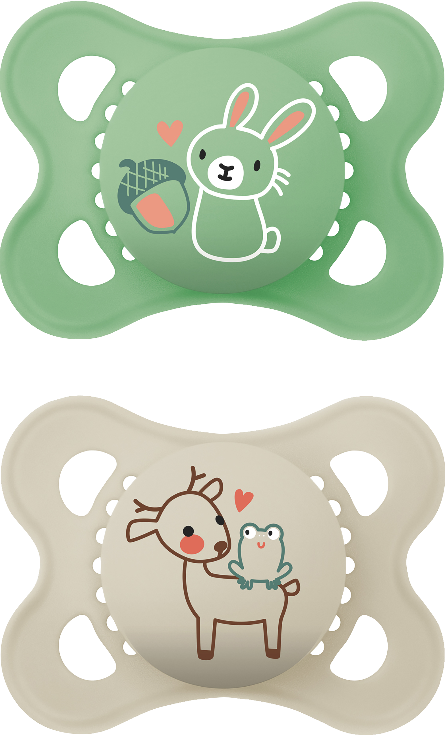 MAM Original är en klassisk napp som är skonsam för barnets hud tack vare stora lufthål och en knottrig insida. Sugdelen är i silkeslen silikon (MAM Skin SoftTM) som känns mjuk och välbekant, precis som mammas hud och accepteras av 94% av bebisarna*. Nappar med söta motiv för barn 0-6 månader.