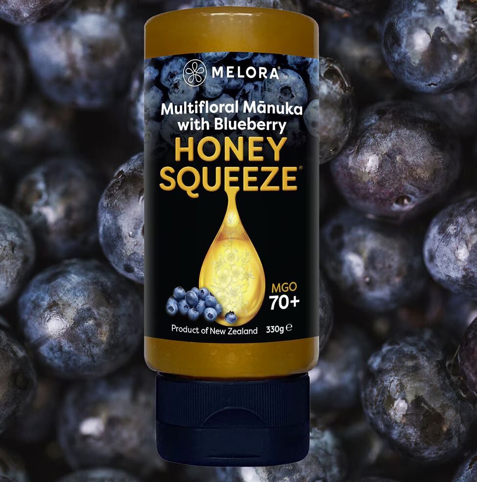 Manukahonung från Nya Zealand, med naturligt extrakt från blåbär som ger en riktigt god smak. I en praktisk klämtub som är lätt att använda. Perfekt som topping på yoghurt eller gröt, eller som ingrediens till matlagning och bakning. Melora® Manukahonung är av hög kvalitet och kan användas i matlagning men också dagligen för att ta del av honungens hälsofördelar. Innehåller upp till 4 gånger mer vitaminer, mineraler & aminosyror än klassisk blomsterhonung.