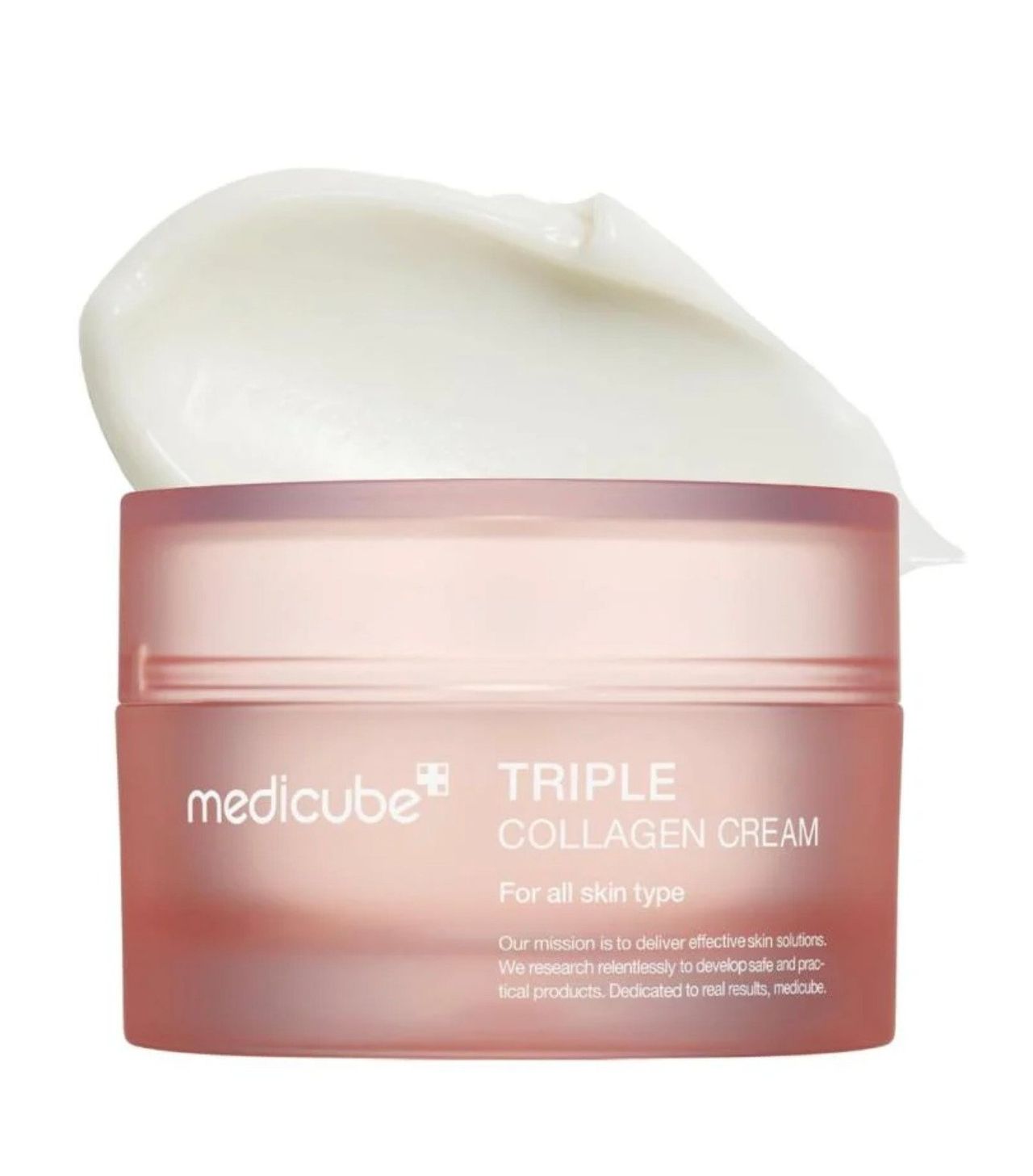 Medicube Triple Collagen Cream 4.0 är den ultimata lösningen för dig som vill ha en fastare, jämnare och mer strålande hy. Denna avancerade "well-ageing"-kräm är framtagen för att inte bara återfukta på djupet, utan även aktivt förbättra hudens struktur och elasticitet. Genom att kombinera kraftfulla peptider med stabila former av C-vitamin får din hud de verktyg den behöver för att stimulera kollagenproduktionen och skydda sig mot dagliga påfrestningar och fria radikaler. Den silkeslena formulan innehåller stjärningrediensen palmitoylpentapeptide-4, en kliniskt dokumenterad peptid som hjälper till att reducera fina linjer och göra huden märkbart spänstigare. Tillsammans med niacinamid, ginseng och lugnande centella asiatica arbetar krämen för att jämna ut hudtonen, minska porer och ge ansiktet en naturlig, hälsosam lyster. Det här är K-Beauty när den är som bäst – innovativ, effektiv och med resultat som syns.