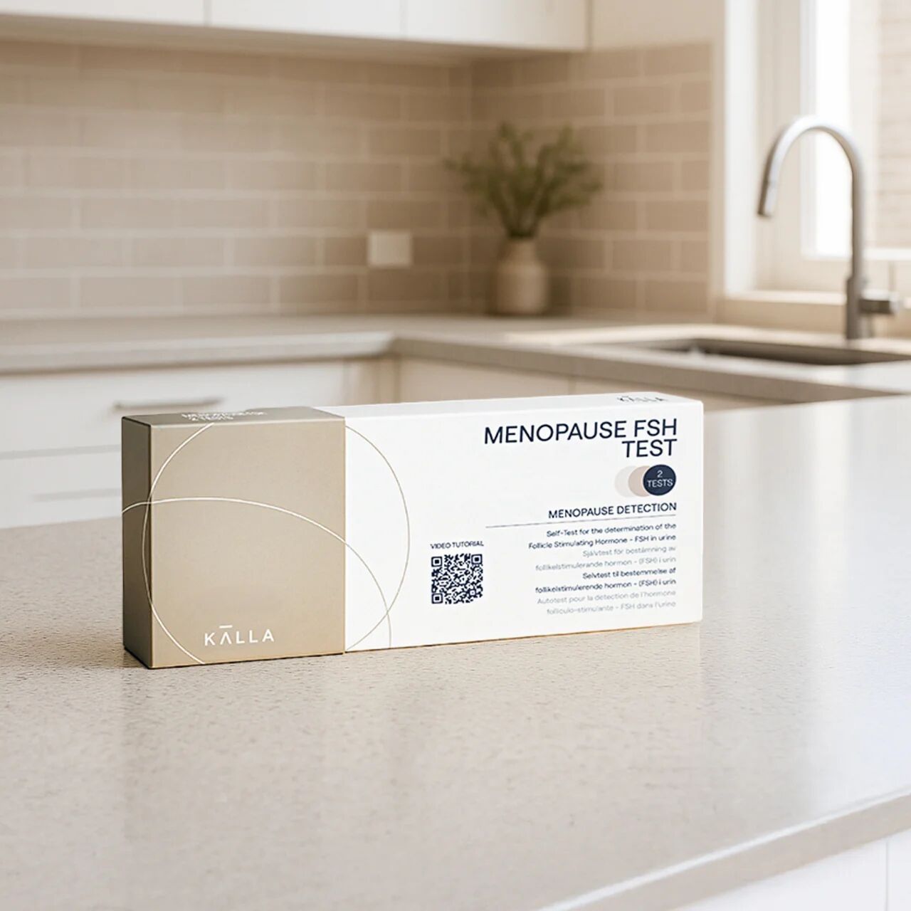 KÄLLA Menopause Test är ett diskret och enkelt urintest för hemmabruk som mäter FSH-nivåer för att avgöra om du är på väg in i förklimakteriet eller klimakteriet. Testresultat levereras inom 5 minuter med 94 % träffsäkerhet.