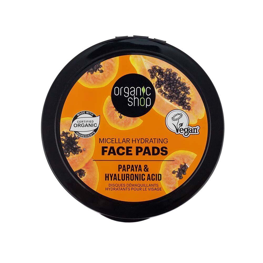 Organic Shop Micellar Hydrating Face Pads är praktiska ansiktspads som effektivt tar bort smink, orenheter och smuts samtidigt som huden återfuktas och får ny lyster. De är indränkta i micellärt vatten med hyaluronsyra och ekologiskt papayaextrakt, vilket gör dem perfekta för daglig rengöring utan att torka ut huden. Passar dig som vill ha en snabb, skonsam och effektiv sminkborttagning.