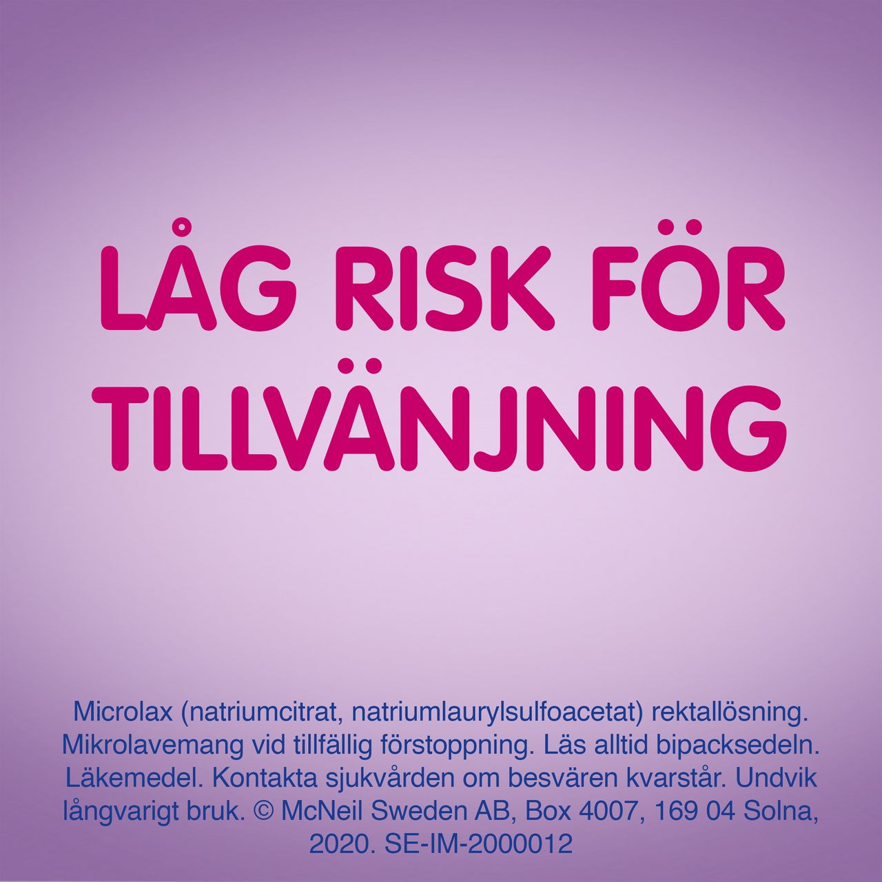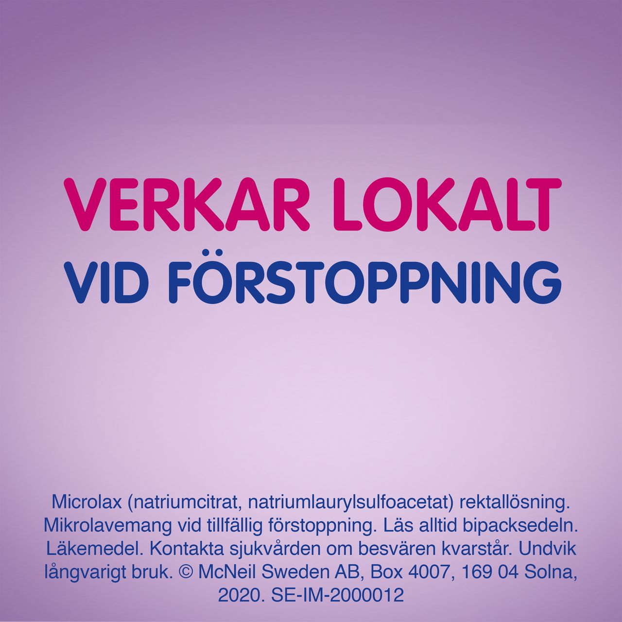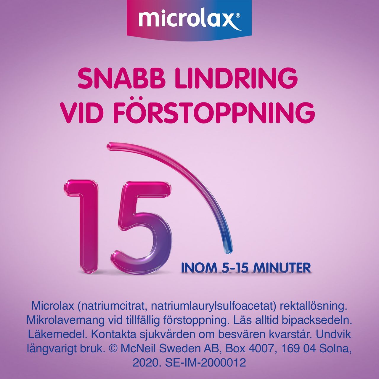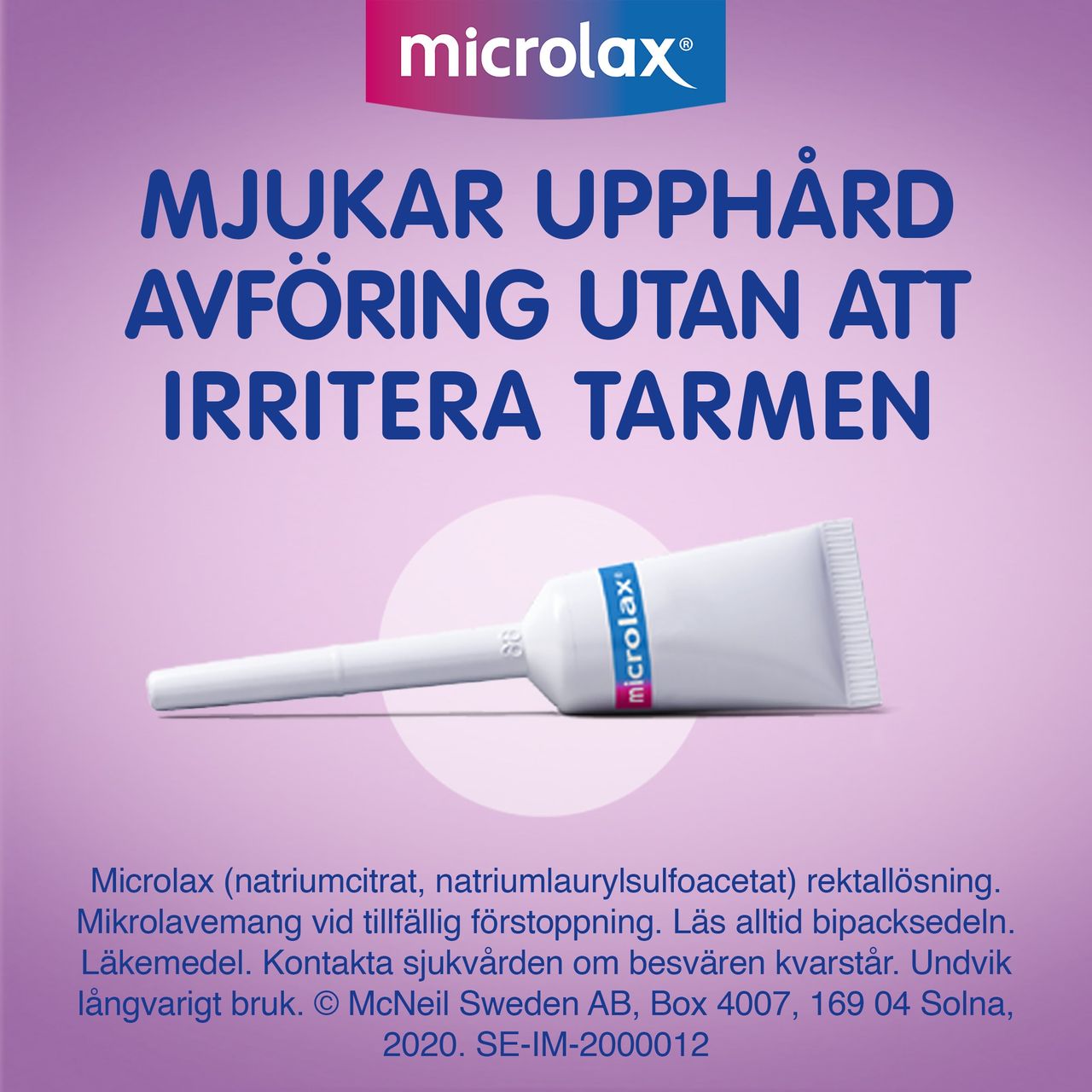Microlax mikrolavemang är ett receptfritt läkemedel som används som snabbverkande behandling vid tillfällig förstoppning. Microlax används även för tömning av tarmen inför undersökning av ändtarmen (rektoskopi) enligt hälso- och sjukvårdens anvisningar. Läkemedlet verkar lokalt i ändtarmen genom att mjuka upp hård avföring och underlätta tarmtömning. Microlax irriterar inte tarmen och tas inte upp i blodomloppet. Produkten är avsedd för kortvarig användning och kan användas av vuxna och barn enligt anvisning i bipacksedeln från Microlax.
