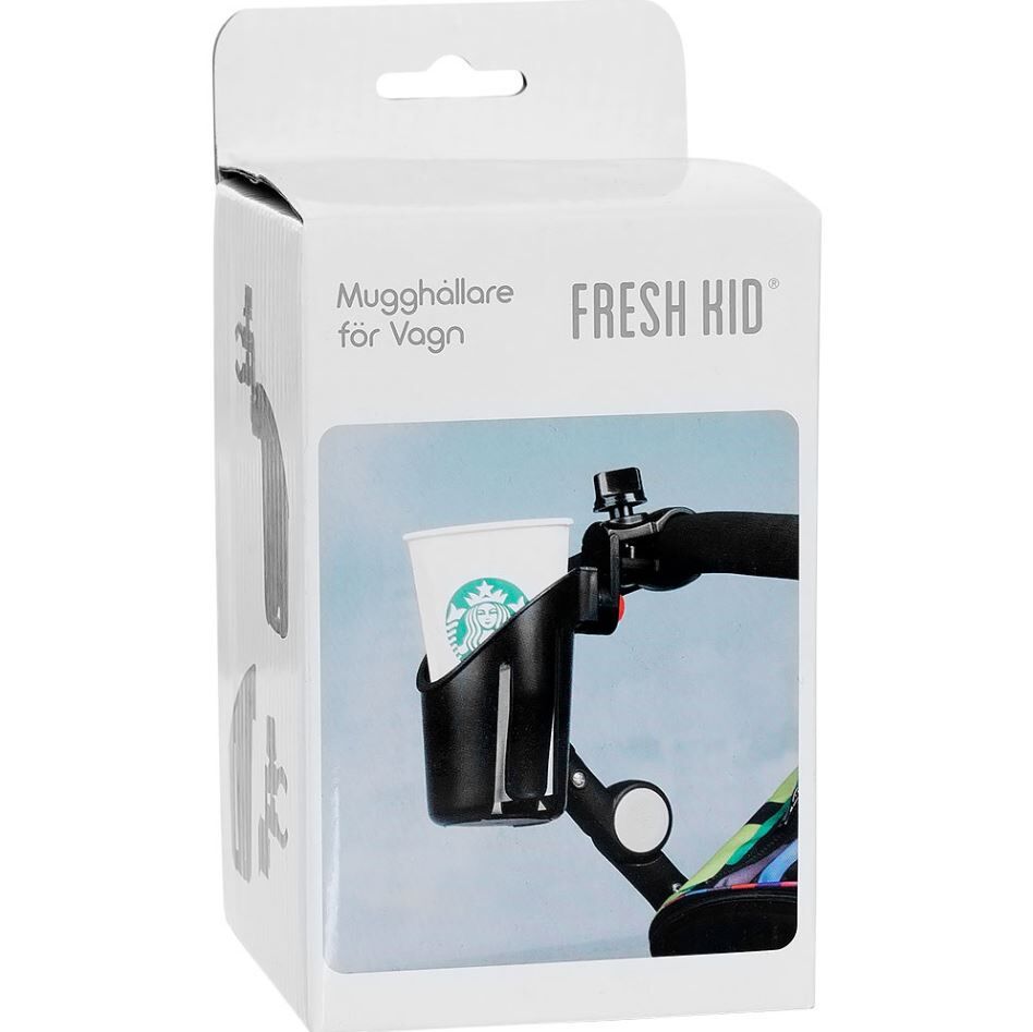 Fresh Kids Mugghållare är ett praktiskt tillbehör för din barnvagn. Hållaren passar de flesta vagnar och monteras enkelt på vagnens handtag med hjälp av medföljande fäste