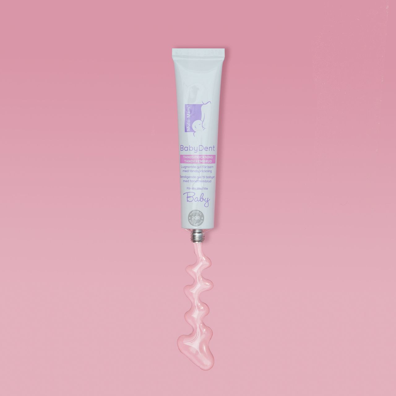 Multi-Mam BabyDent ger effektiv och snabb lindring vid tandsprickning. Gelen skapar en tunn hinna över tandköttet som skyddar, lindrar obehag och minskar svullnad. Naturligt innehåll och ofarlig att svälja. Kan även smörjas på napp eller bitring.