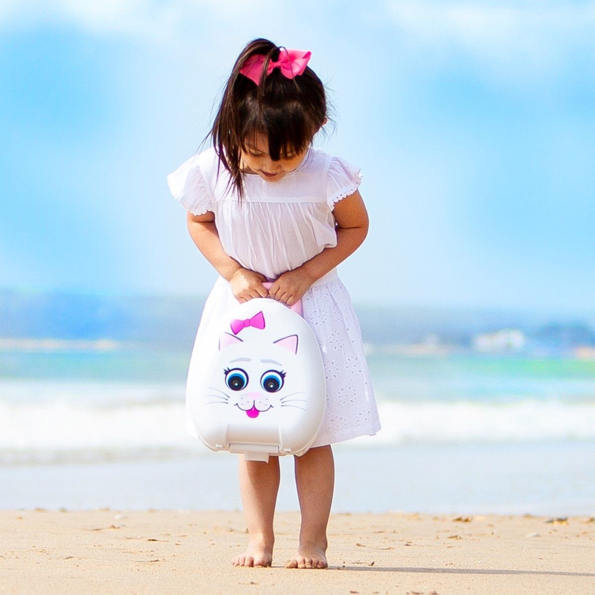 My Carry Potty Katt är en potta för barn som underlättar potträningen. Pottan är bärbar och stängs som en liten väska. Designad för att lätt kunna finnas nära till hands när den behövs, och för att ge trygghet under potträningen.