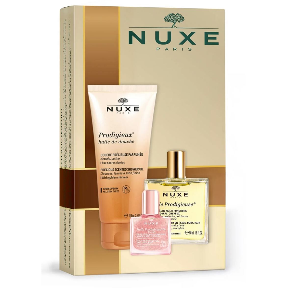 Nuxe Prodigieuse Presentpaket är en presentförpackning med tre lyxiga produkter från Nuxe. Innehåller Huile Prodigieux, Prodigieux Shower Oil och Prodigieux Body Lotion. Doftar härligt av Nuxes klassiska Prodigieux-doft med noter av apelsinblomma, magnolia och vanilj.