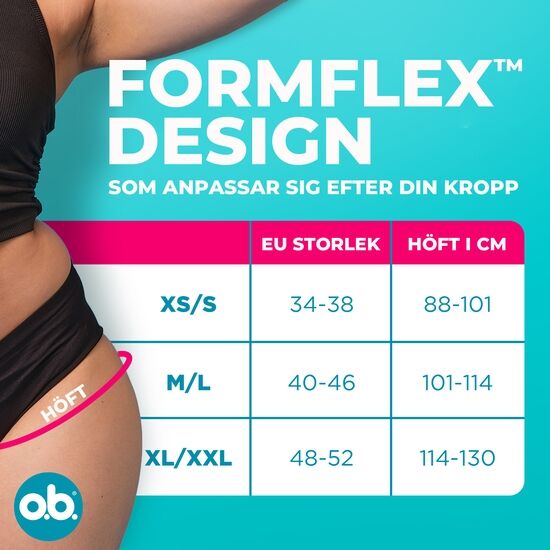 o.b.® Period Pants är den perfekta lösningen för dig som söker ett pålitligt, bekvämt och hållbart alternativ till engångsskydd. Dessa menstrosor är utrustade med en avancerad läckageskyddande teknologi som håller dig torr och trygg i upp till 12 timmar. Med ett topplager av 100 % ekologisk bomull som andas, transporteras vätskan bort på bara några sekunder, vilket ger en fräsch känsla hela dagen eller natten.