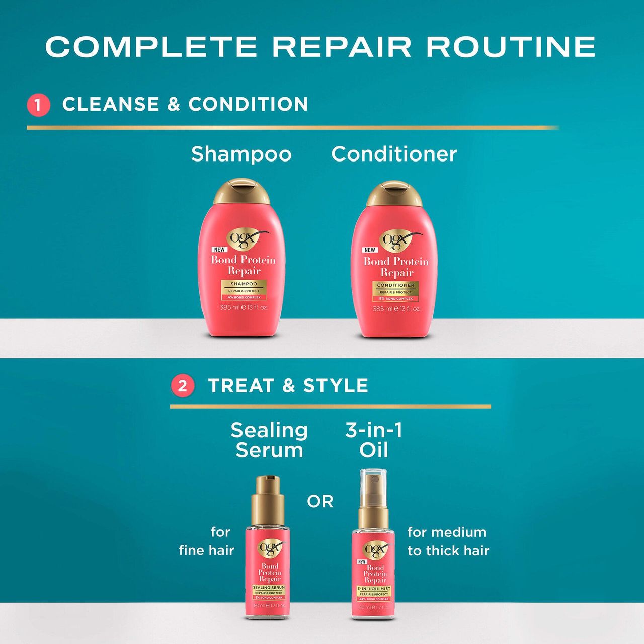 OGX Bond Repair Sealing Serum är ett högpresterande och stärkande hårserum särskilt utvecklat för att vårda torrt och skadat hår. Detta serum är berikat med OGX innovativa Bond Protein Complex, en teknologi som går på djupet för att reparera och återuppbygga hårets inre struktur. Samtidigt förseglas och skyddas hårstråets yta, vilket resulterar i ett hår som upplevs friskare, glansigare och betydligt mer motståndskraftigt.