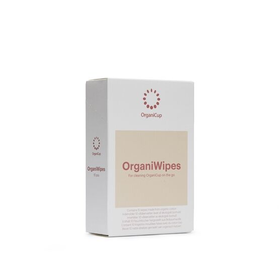 OrganiWipes är desinficerande tvättservetter till menstruationskoppen OrganiCup, vid tillfällen då man inte har tillgång till rent vatten. De är packade separat, så de är perfekt att ta med i fickan eller väskan.