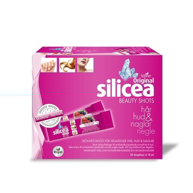 Silicea Beauty Shots är ett komplement till övriga produkter i Original Silicea-serien. Förutom kisel innehåller Beauty Shots även biotin som bidrar till att bibehålla normalt hår och hud samt selen som bidrar till att behålla normala naglar.