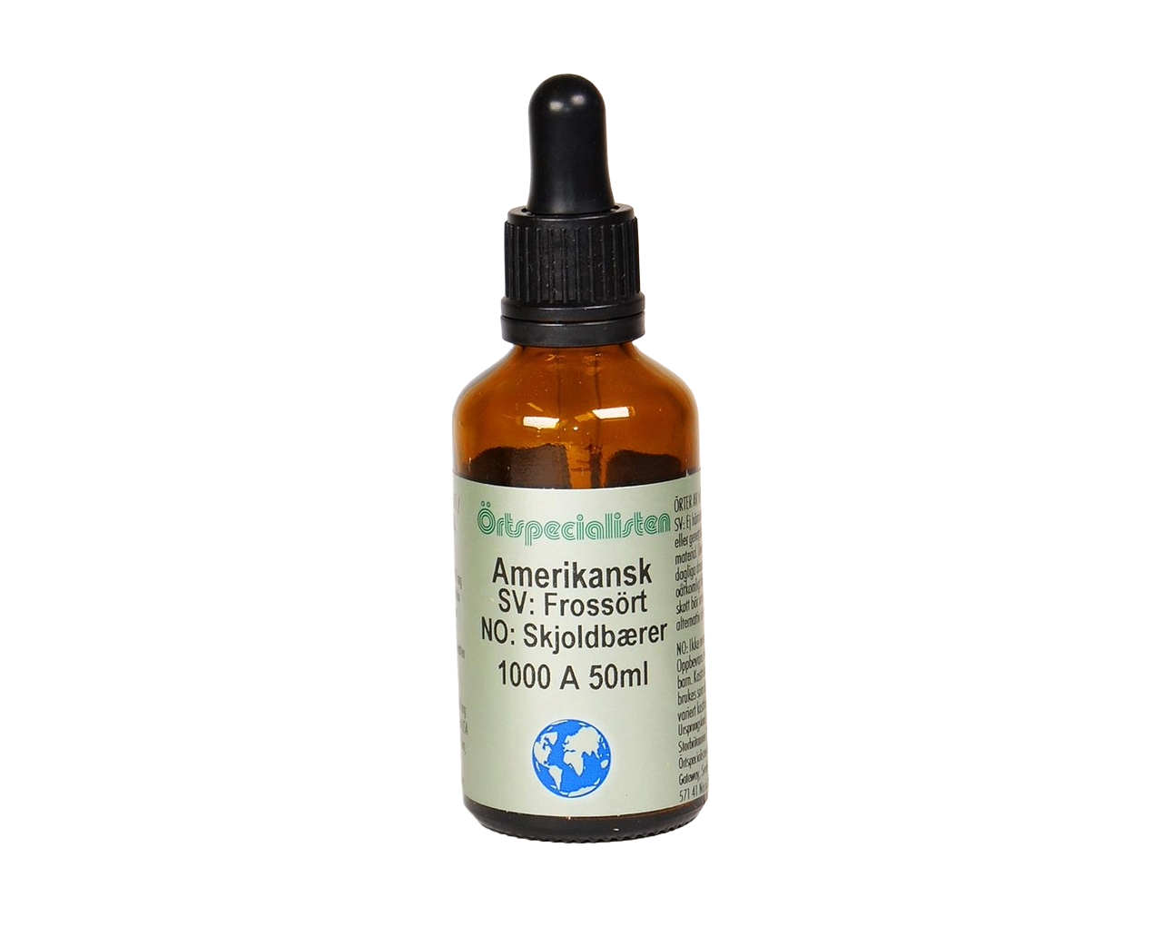 Amerikansk Frossört 50ml elixir i flaska från Örtspecialisten. Huvudsakliga aktiva beståndsdelar är flavonoider, bitterglykosider, eteroljor, lignin, resin och garvämnen.