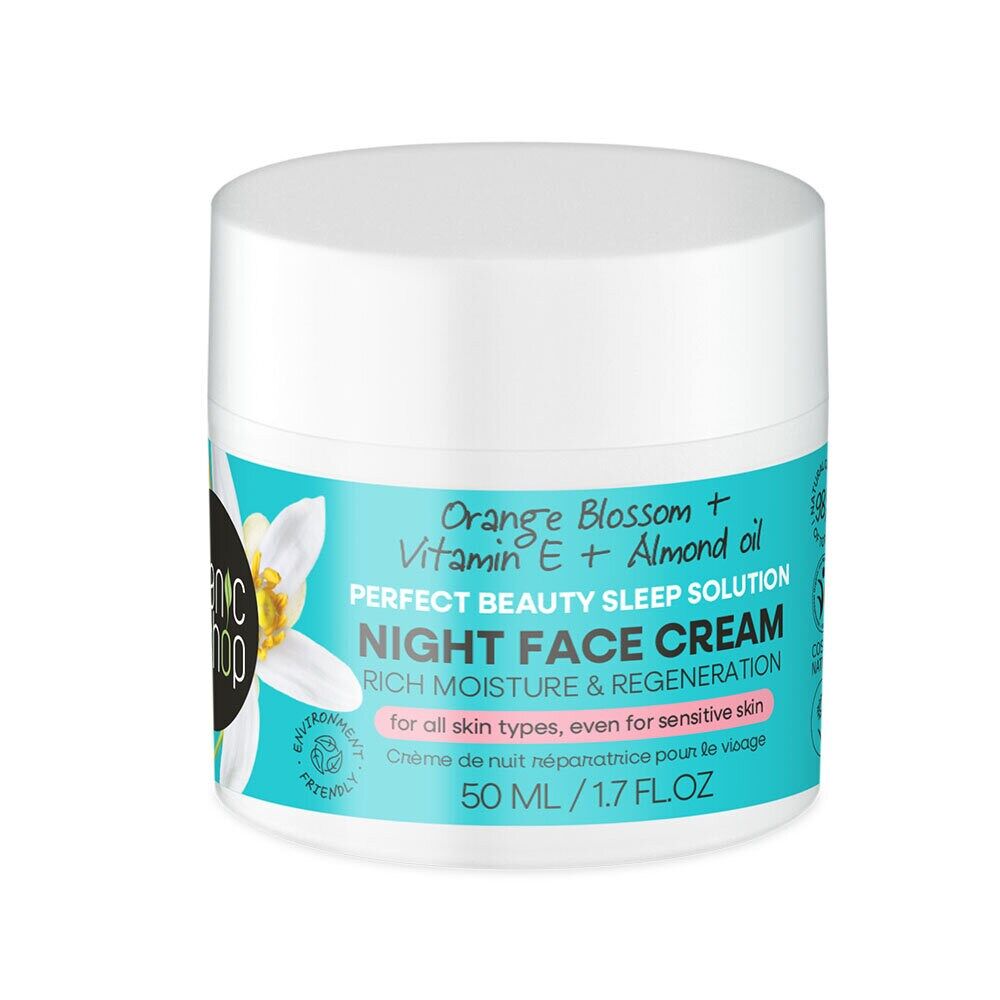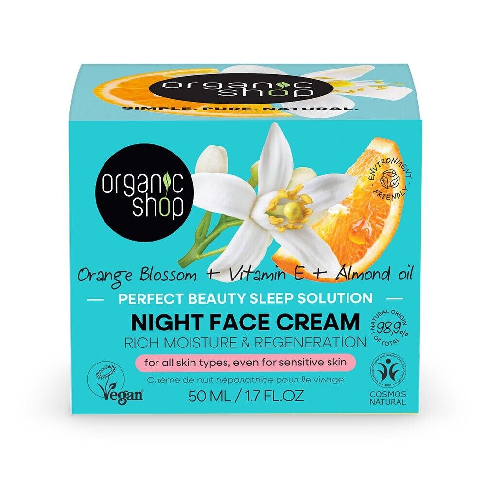 Vakna upp med naturligt glow! Organic Shop Perfect Beauty Sleep Solution Night Face Cream är en näringsrik nattkräm som arbetar medan du sover för att återfukta, släta ut och ge huden ny lyster. Den silkeslena formulan är berikad med apelsinblomma, hög halt av vitamin C och mjukgörande mandelolja – en kombination som hjälper till att förnya hudens elasticitet och ge en strålande hud när morgonen kommer.