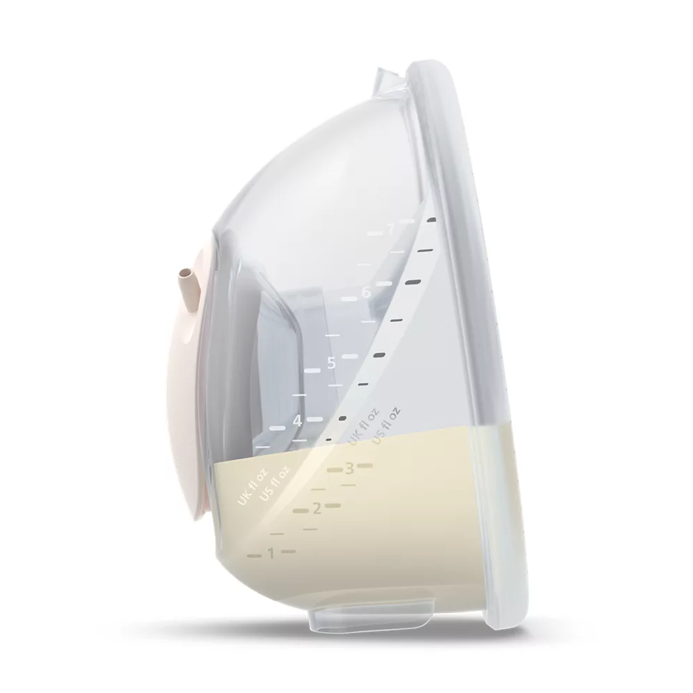 De genomskinliga uppsamlingsbehållarna gör att du kan se inuti dem. De hjälper dig att placera bröstvårtorna rätt för bästa möjliga mjölkflöde och gör att du kan se bröstmjölkens volym. För säker pumpning från första till sista droppen.
