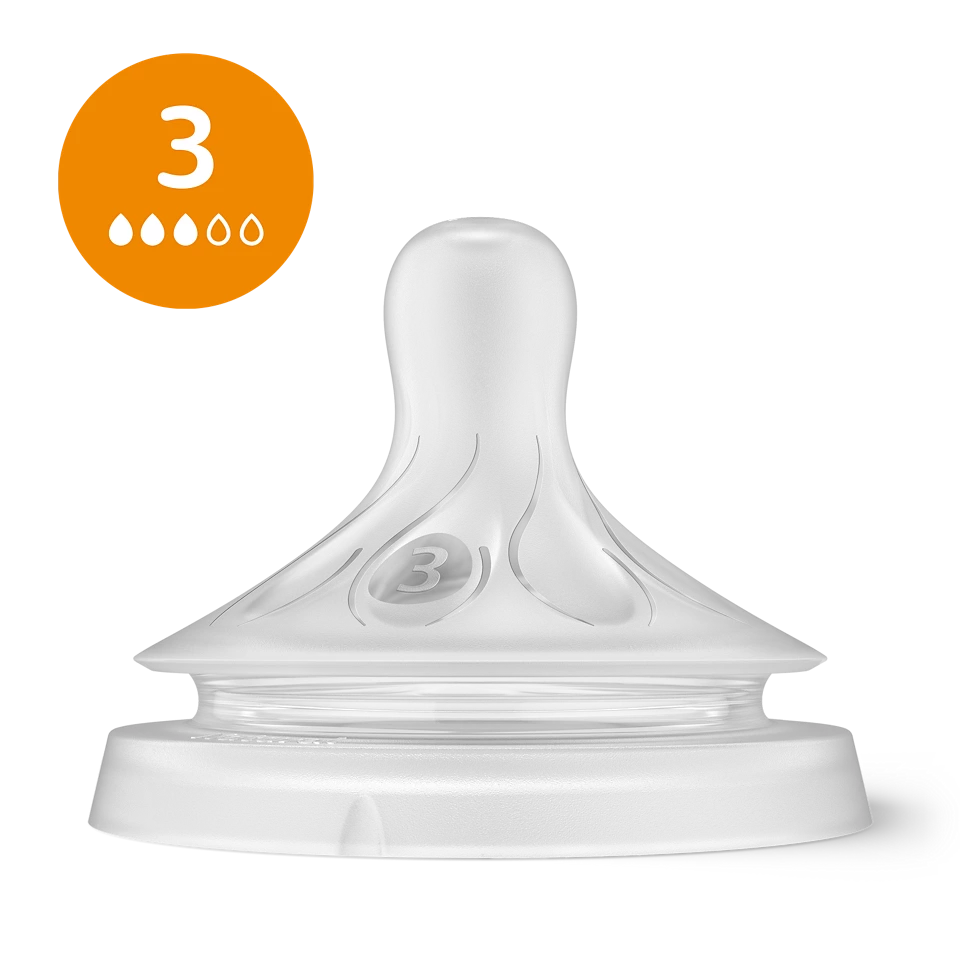 Natural Response dinappen fungerar med bebisens naturliga matningsrytm, vilket gör det enkelt att kombinera amning och flaskmatning. Nappen har en unik öppning som bara släpper ut mjölk när bebisen dricker så när hen gör en paus för att svälja och andas slutar mjölken att flöda.