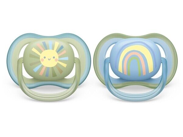 Låter barnets hud andas Lugna med luft. Philips Avent ultra air-nappen har extra stora lufthål för att hålla barnets hud torr. Tillgänglig i olika färger och modeller.