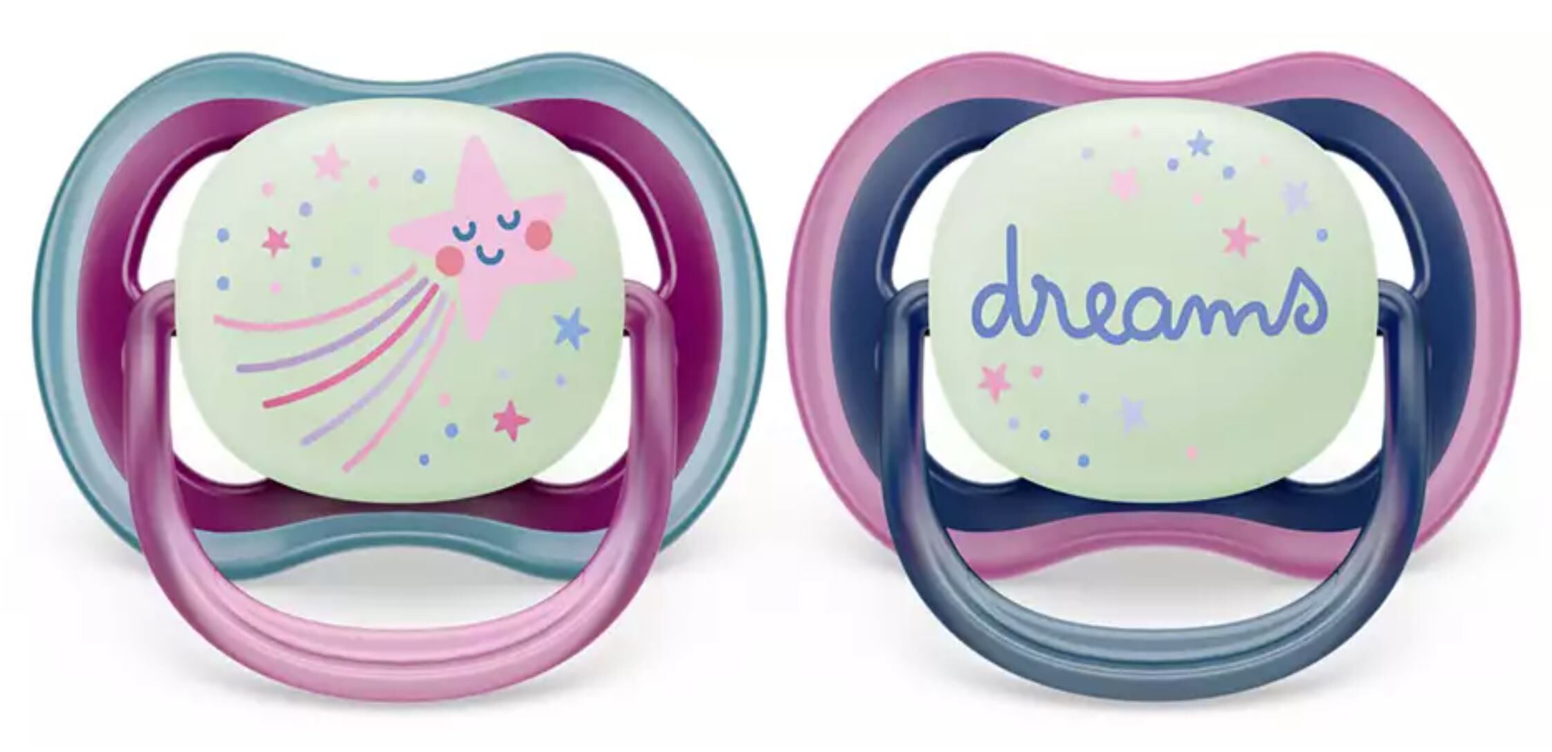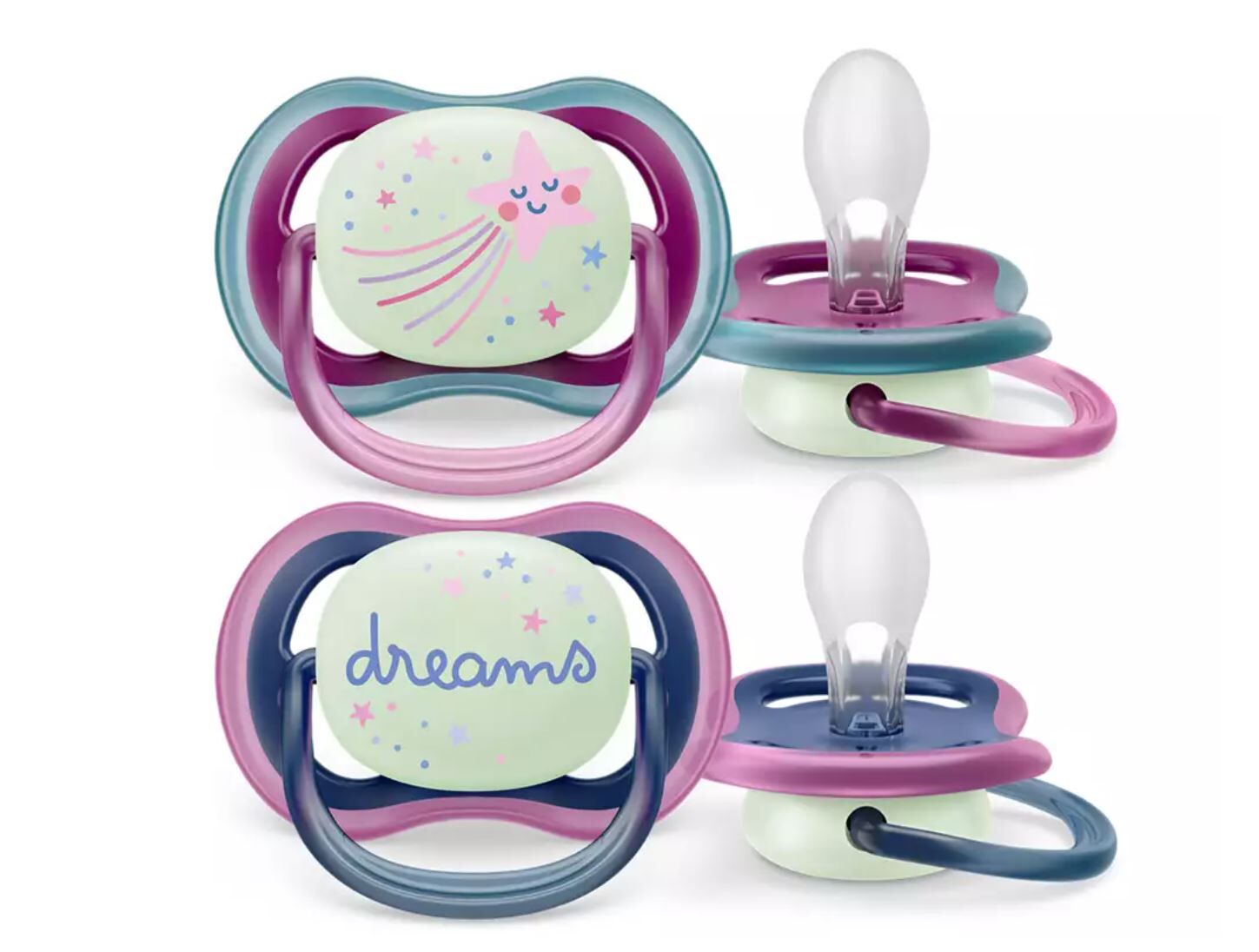 En lätt napp som andas och som är lätt att hitta i mörkret. Lugna din bebis med en napp som låter huden andas och som är lätt att hitta på natten. Philips Avent ultra air night har extra stora hål för att hålla huden torr och en lyser-i-mörkret-napp så att du kan se den när lamporna är släckta.