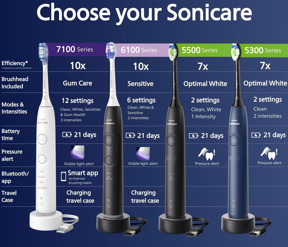 Philips Sonicare 5500 har nästa generations Sonicare-teknik, ett särskilt blekningsläge och en inbyggd tryckvarning. Levereras med ett resefodral.