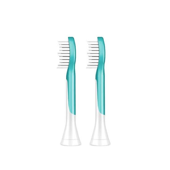 Standardtandborsthuvudet Philips Sonicare For Kids har en konturformad profil som passar tänder på barn från 7 års ålder och mjuka borststrån som rengör skonsamt. Baksidan av borsthuvudet är klätt i gummi som ger en säkrare och behagligare rengöring. Finns även i mindre och kompaktare storlek för barn från 4 år.