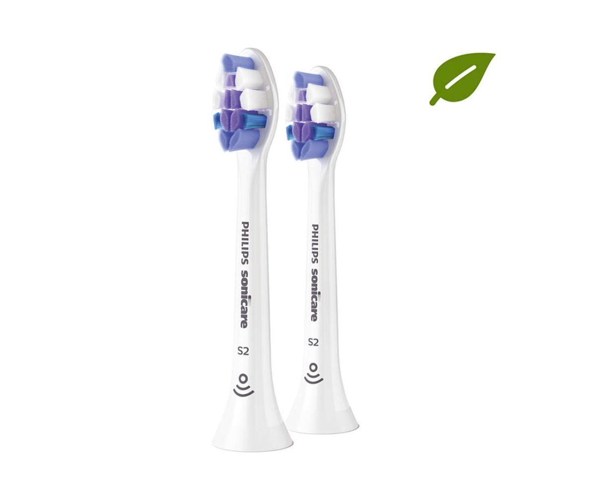 Med de tunnaste borststråna av alla Sonicare-borsthuvuden (0,1 mm) ger S2 Sensitive en skonsam men ändå effektiv borstningsupplevelse.