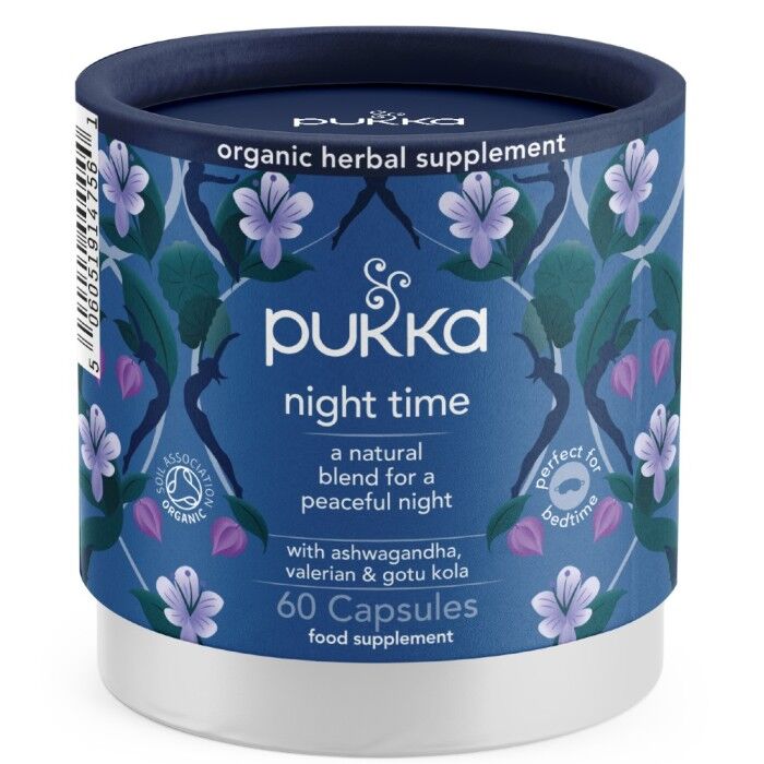 Pukka Night Time är ett kosttillskott framtaget av örtexperter, och utgår från traditionella örtkunskaper. Pukka Night Time innehåller ekologiska örter, bland annat ashwagandharot och vänderot, och är en del i Pukkas Sleep-serie. Pukkas kosttillskott Night Time i kapslar innehåller en ekologisk örtblandning med bland annat valerianarot och ashwagandharot som stödjer sömnen. Det är en koncentrerad ekologisk blandning med några av världens finaste örter av högsta kvalitet, noggrant utvalda för att ge dig så mycket som möjligt av naturens godhet!