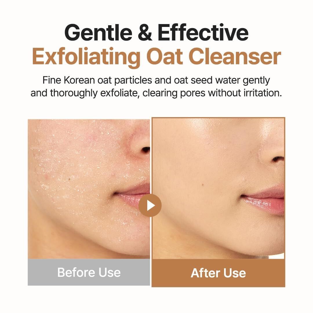 PURITO Oat In Gentle Exfoliating Face Cleanser är en innovativ och mild peeling-rengöring berikad med hela 92 000 ppm havrekärnvatten. Genom att använda havrepartiklar i två olika storlekar exfolierar produkten huden på ett mjukt men effektivt sätt. Den avlägsnar orenheter och döda hudceller samtidigt som den bevarar hudens fuktbalans och verkar lugnande på irritationer.