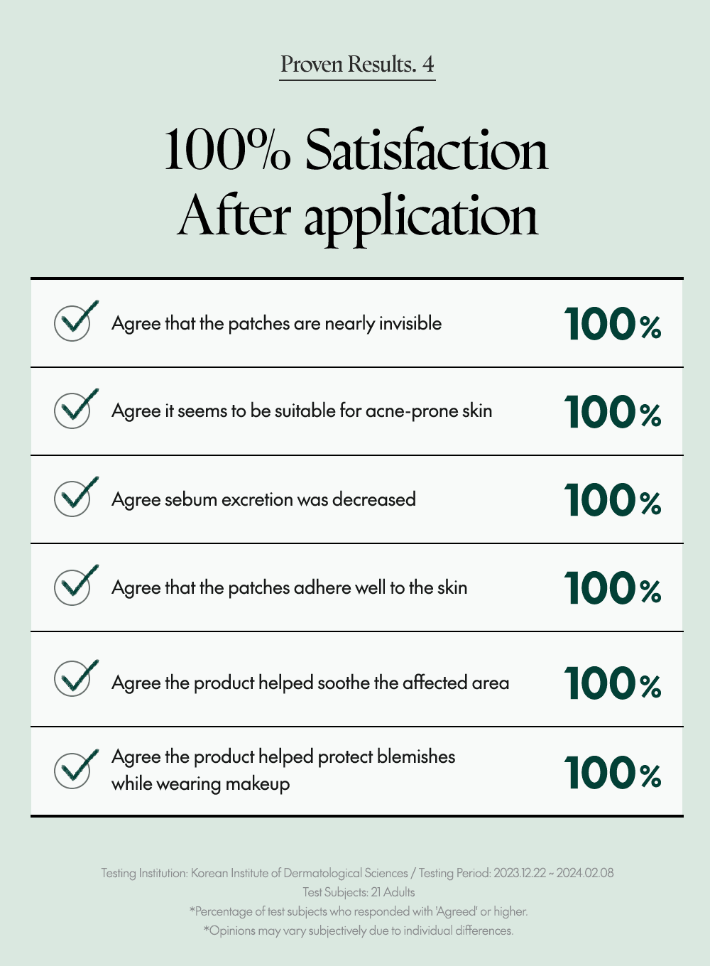 Plåstren är berikade med aktiva ingredienser från Centella Asiatica (Asiaticoside, Madecassic Acid och Asiatic Acid) som lugnar det irriterade området och minskar rodnad. Tack vare sin diskreta design kan de bäras under hela dagen eller natten för att skydda området mot yttre bakterier och förhindra att man rör vid inflammationen.