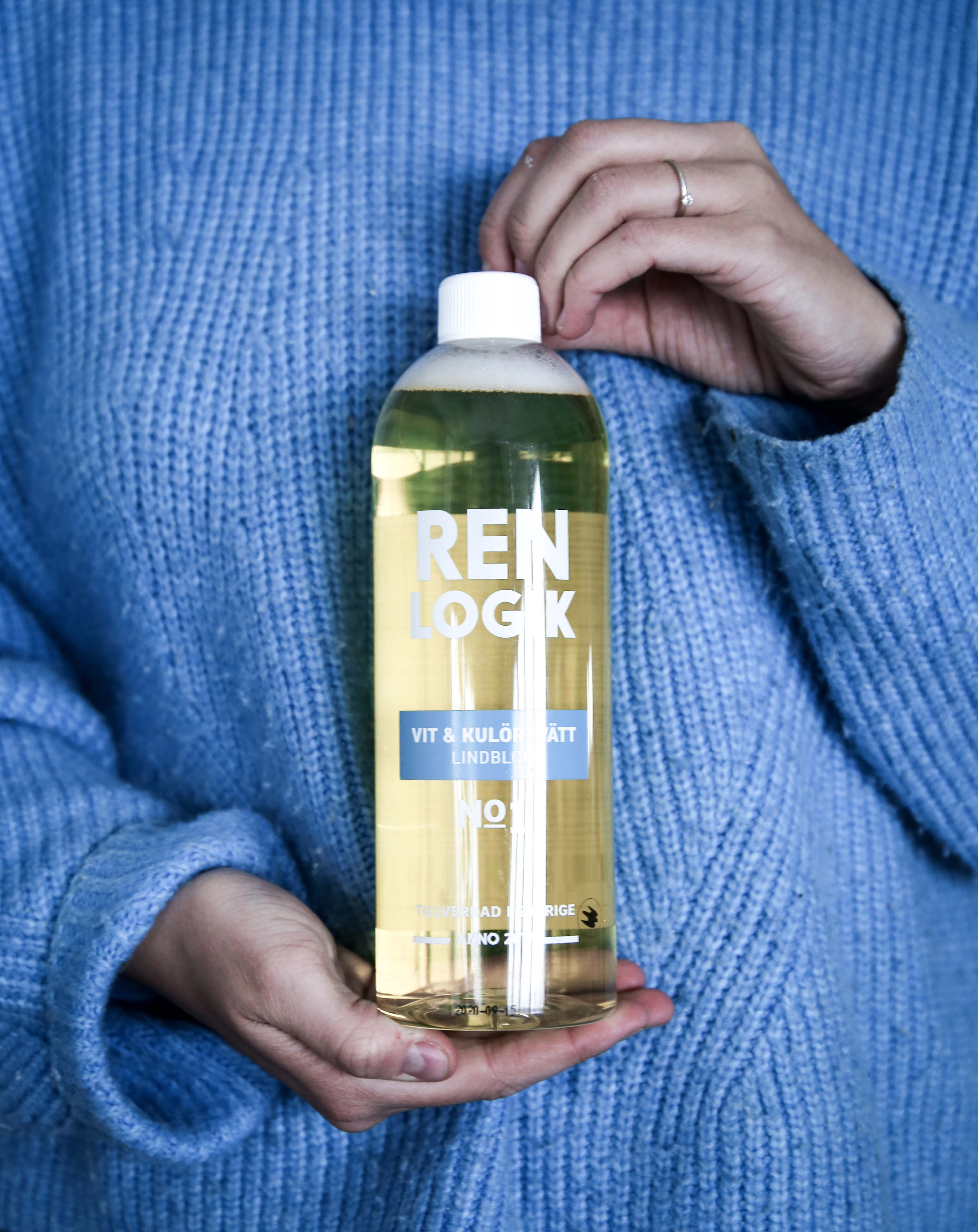 Ren Logiks tvättmedel är biologiskt nedbrytbart. Förpackningen är gjord av bioplast.