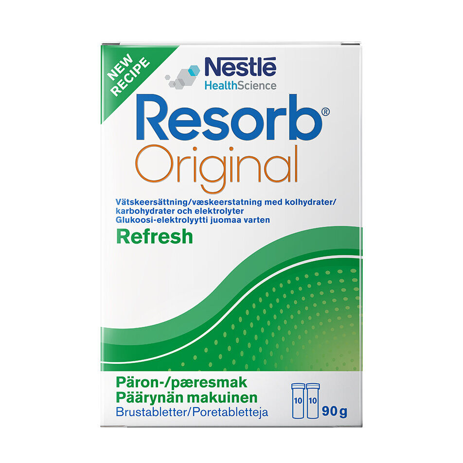 Bidrar till ökat vätskeintag. Resorb® Original är vätskeersättning med god och uppfriskande smak av päron.