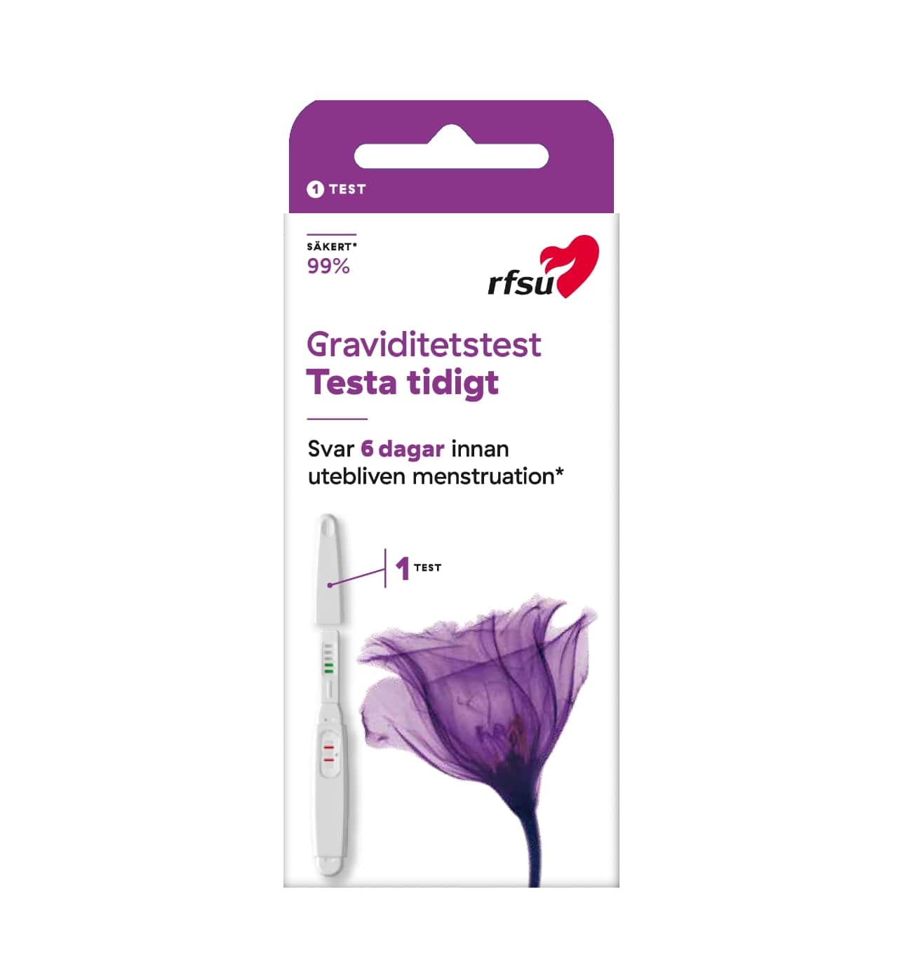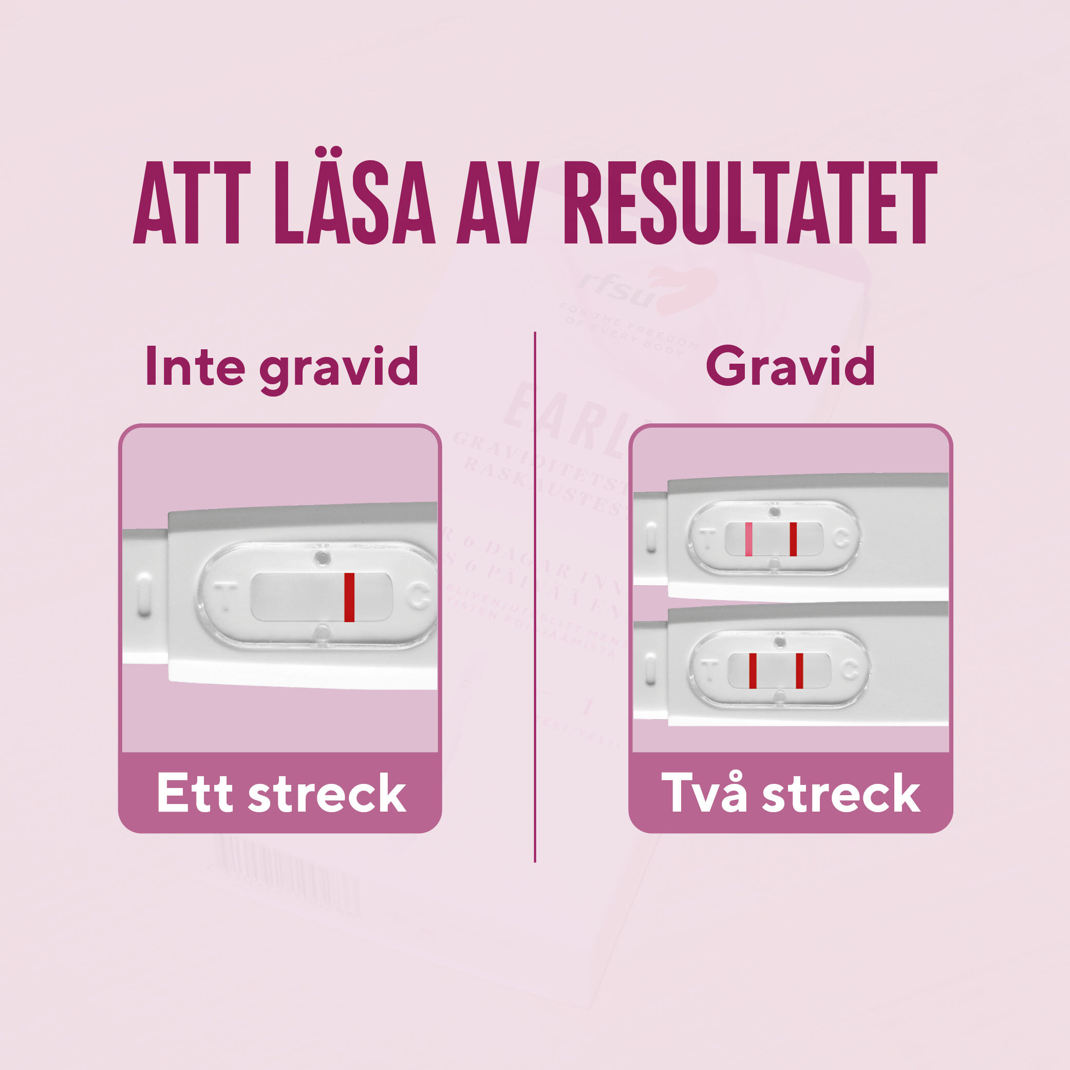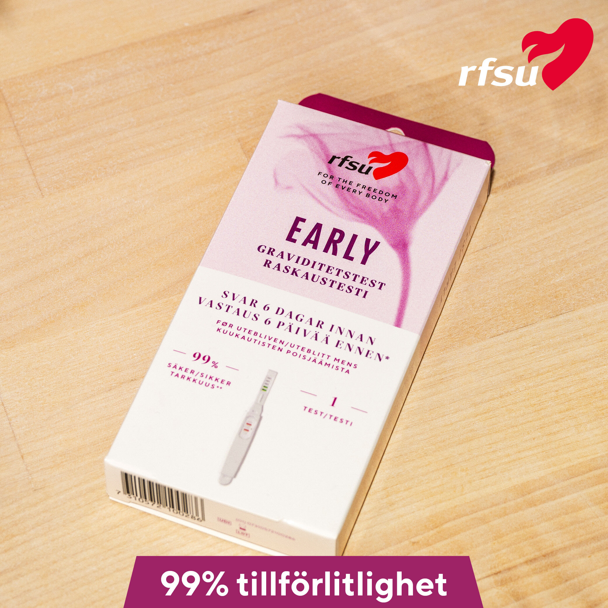 Med RFSU Graviditetstest kan du själv snabbt och enkelt ta reda på om du är gravid. Testet är 99% säkert. Känsligheten är mycket låg (10 mIU/ml).