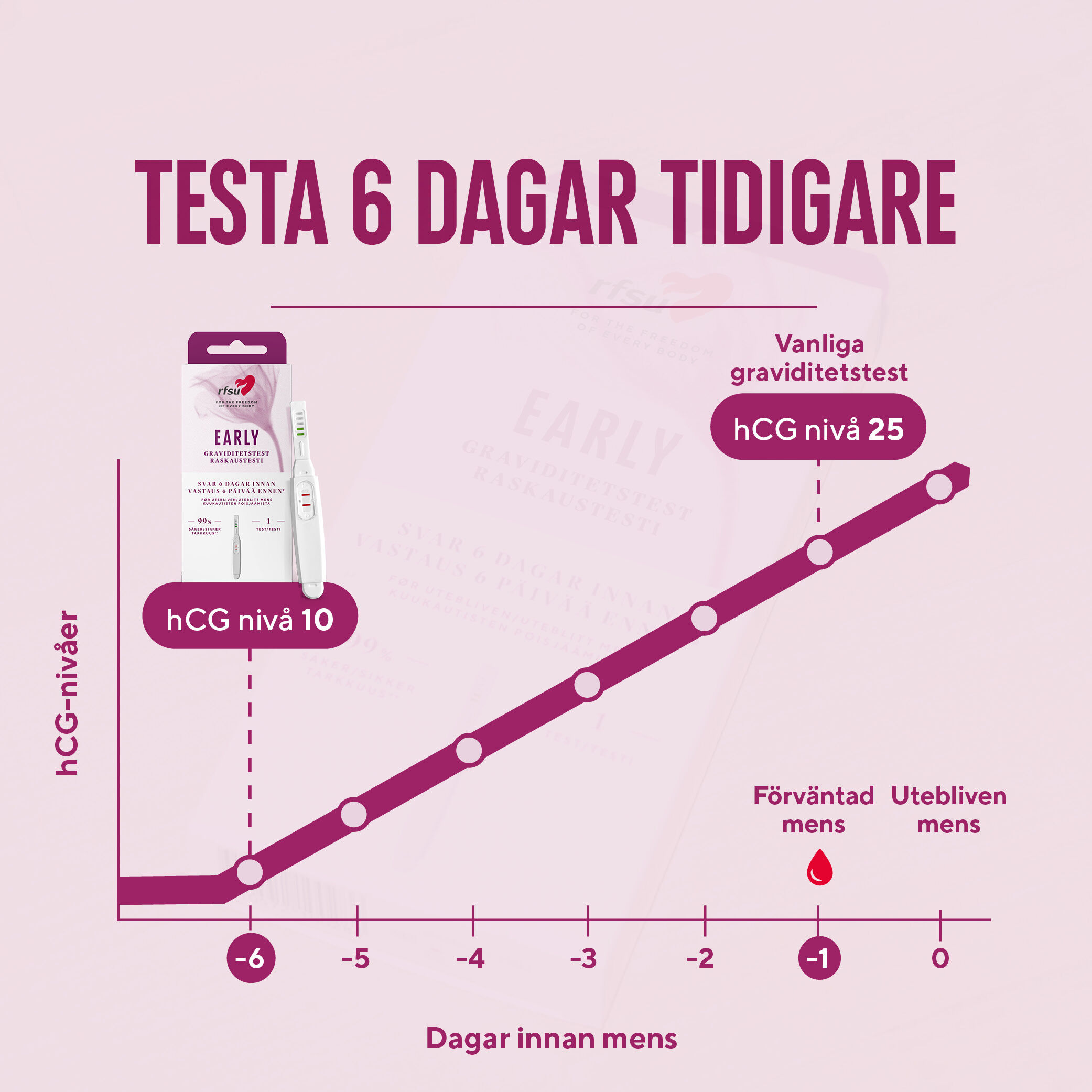 Du kan göra testet redan 10 till 15 dagar efter befruktning, ca. 6 dagar innan förväntad mens. Säkrast är att mäta morgonurin.