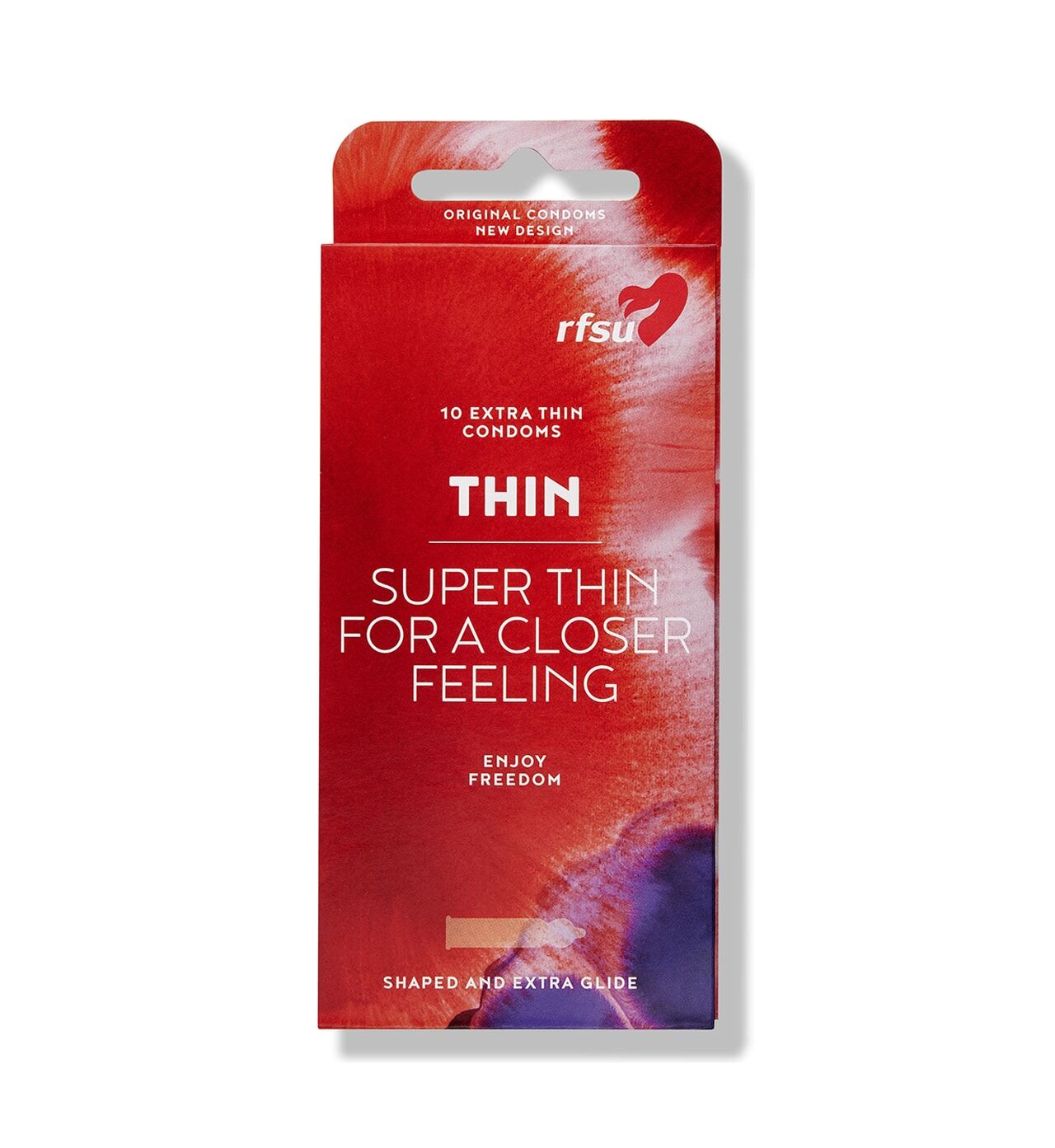 RFSU Thin är tunna kondomer med extra glidmedel för en närmare känsla, nästan som utan. Thin är för alla som tycker att en extra tunn kondom är en bättre kondom.
