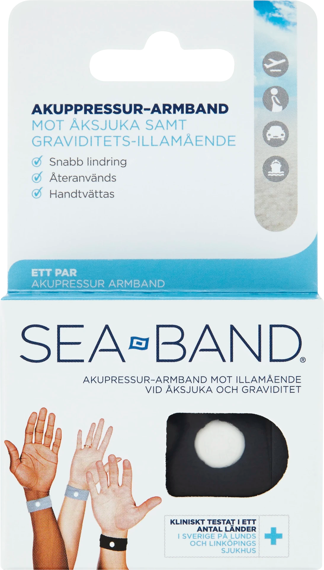 Sea-Band är ett naturligt och effektivt sätt att lindra illamående utan användning av läkemedel. Detta elastiska armband fungerar genom akupressur, där en fast plastkula stimulerar punkten P6 (Nei-Kuan) på underarmens insida. Metoden är kliniskt beprövad och används ofta för att hantera besvär vid graviditetsillamående, sjösjuka och åksjuka.